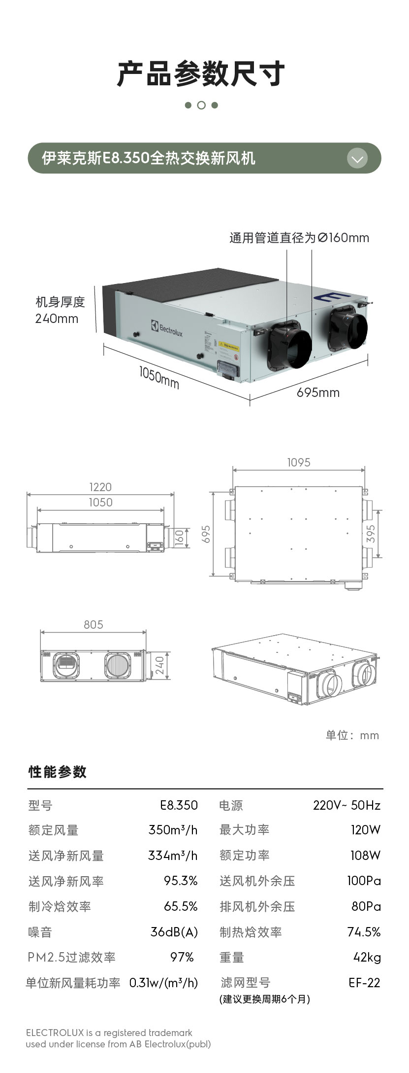 伊莱克斯E8.350全热交换新风机