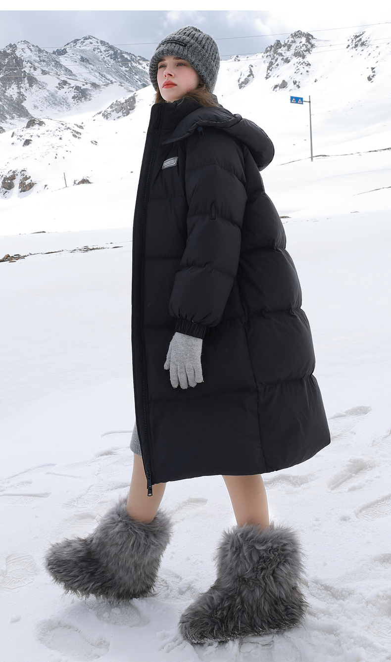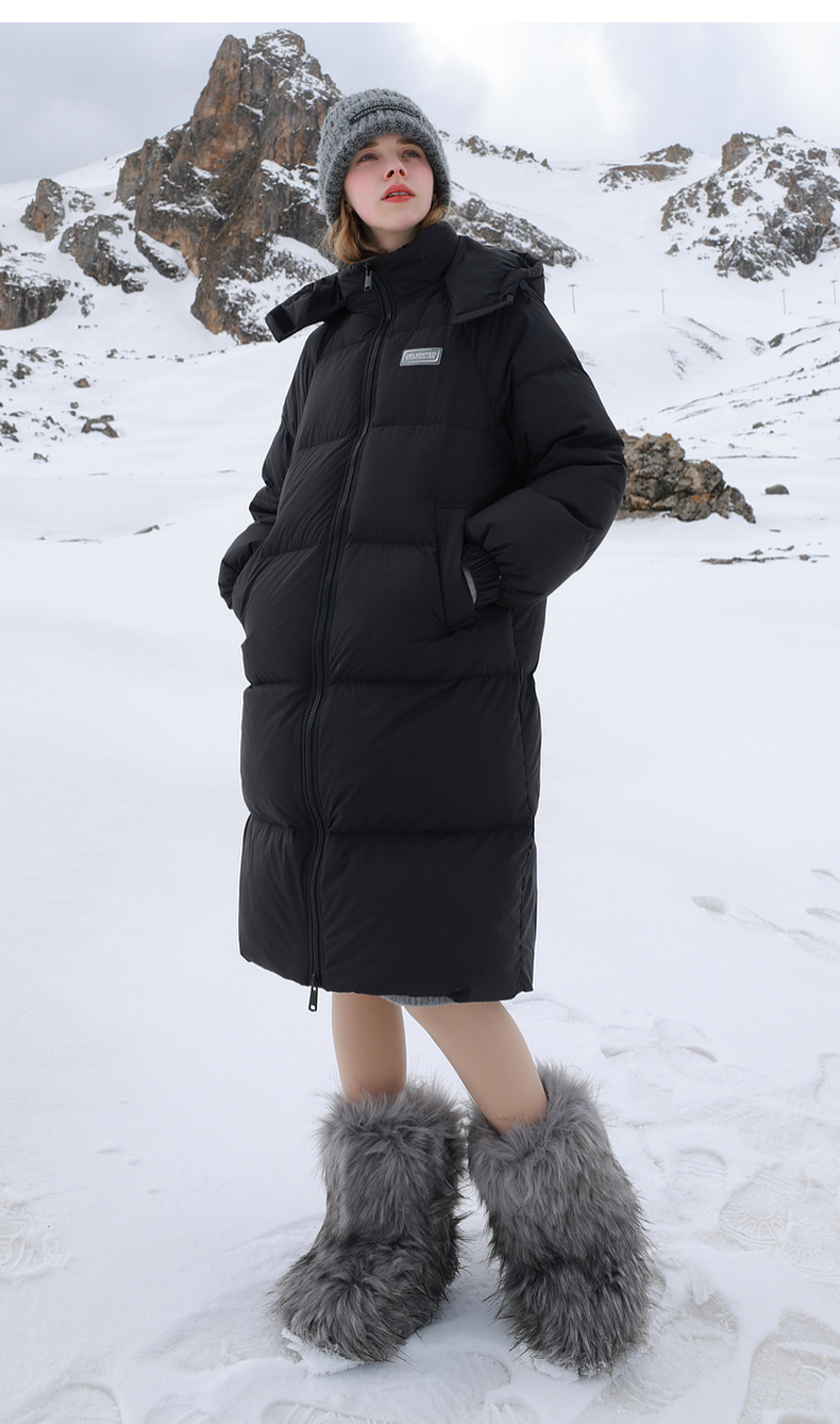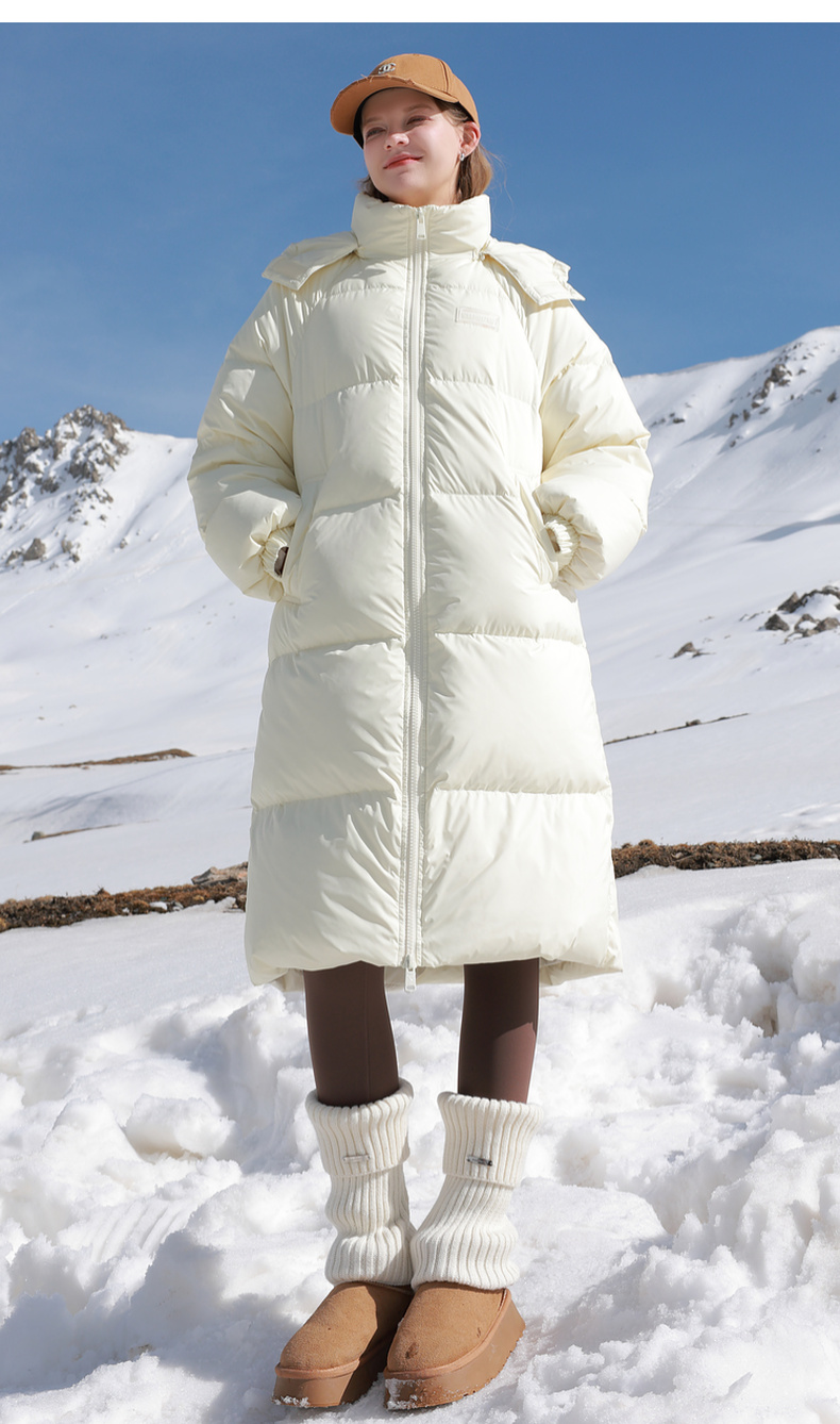 三彩2025冬季新款纯色长款羽绒服白鸭绒保暖外套贴标休闲宽松M