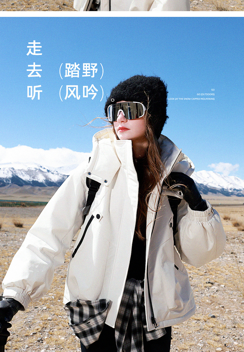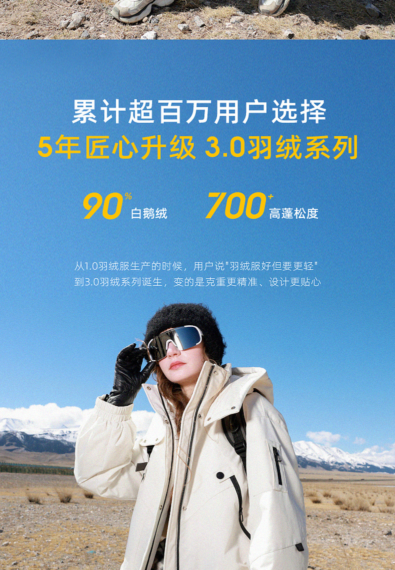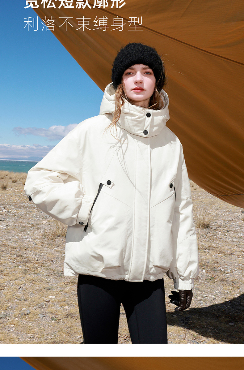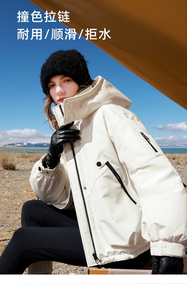 【90白鹅绒】三彩2025冬季新款防水羽绒服宽松连帽压胶鹅绒服M