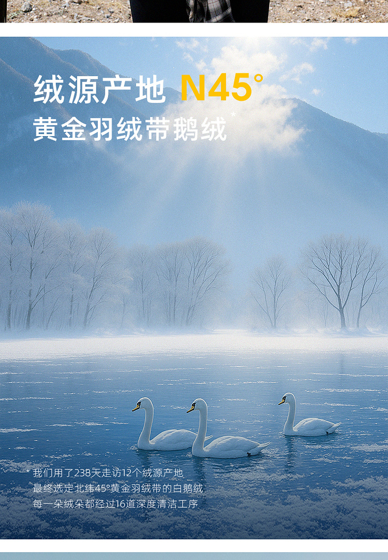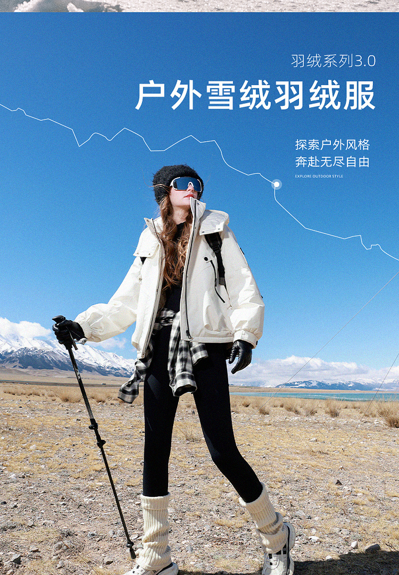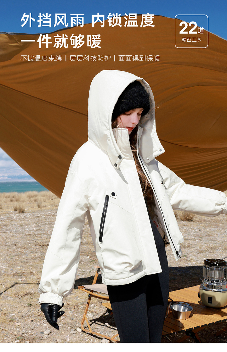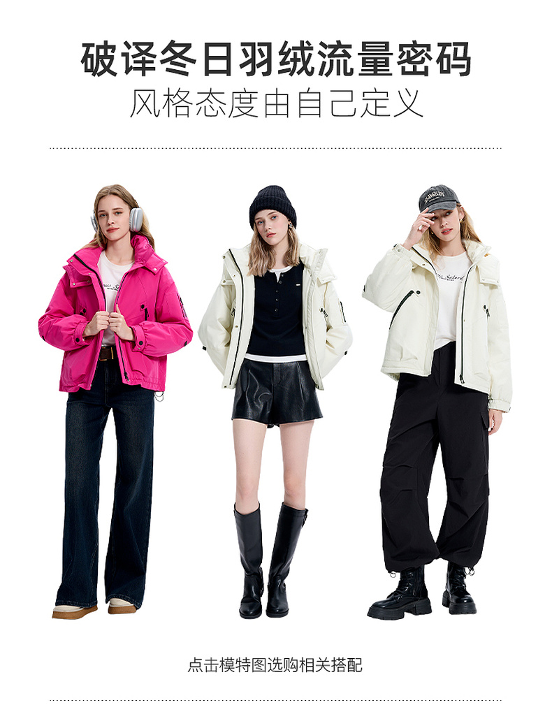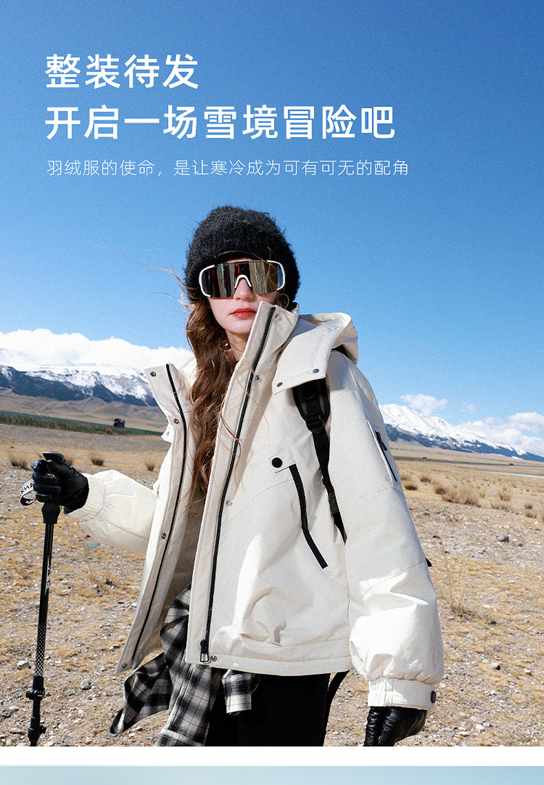 【90白鹅绒】三彩2025冬季新款防水羽绒服宽松连帽压胶鹅绒服M