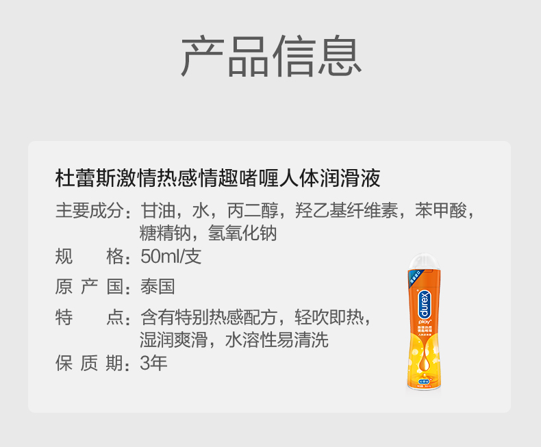 【情趣用品】杜蕾斯 热感润滑液50ml冻损无售后