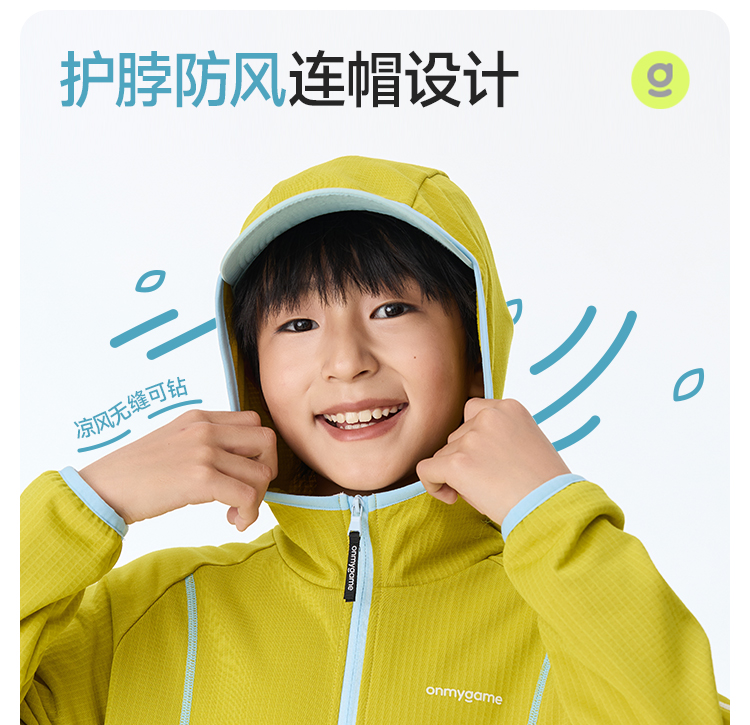 onmygame【空气感轻暖格纹】儿童外套防风抗静电连帽上衣25秋季新款