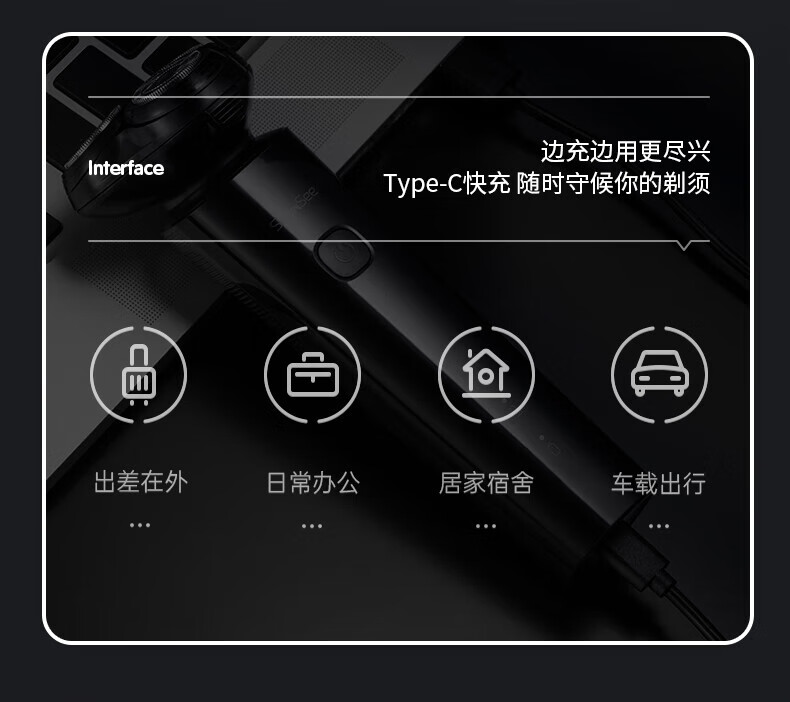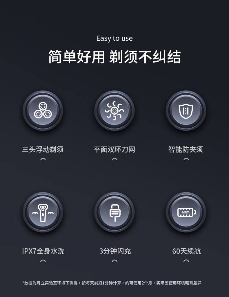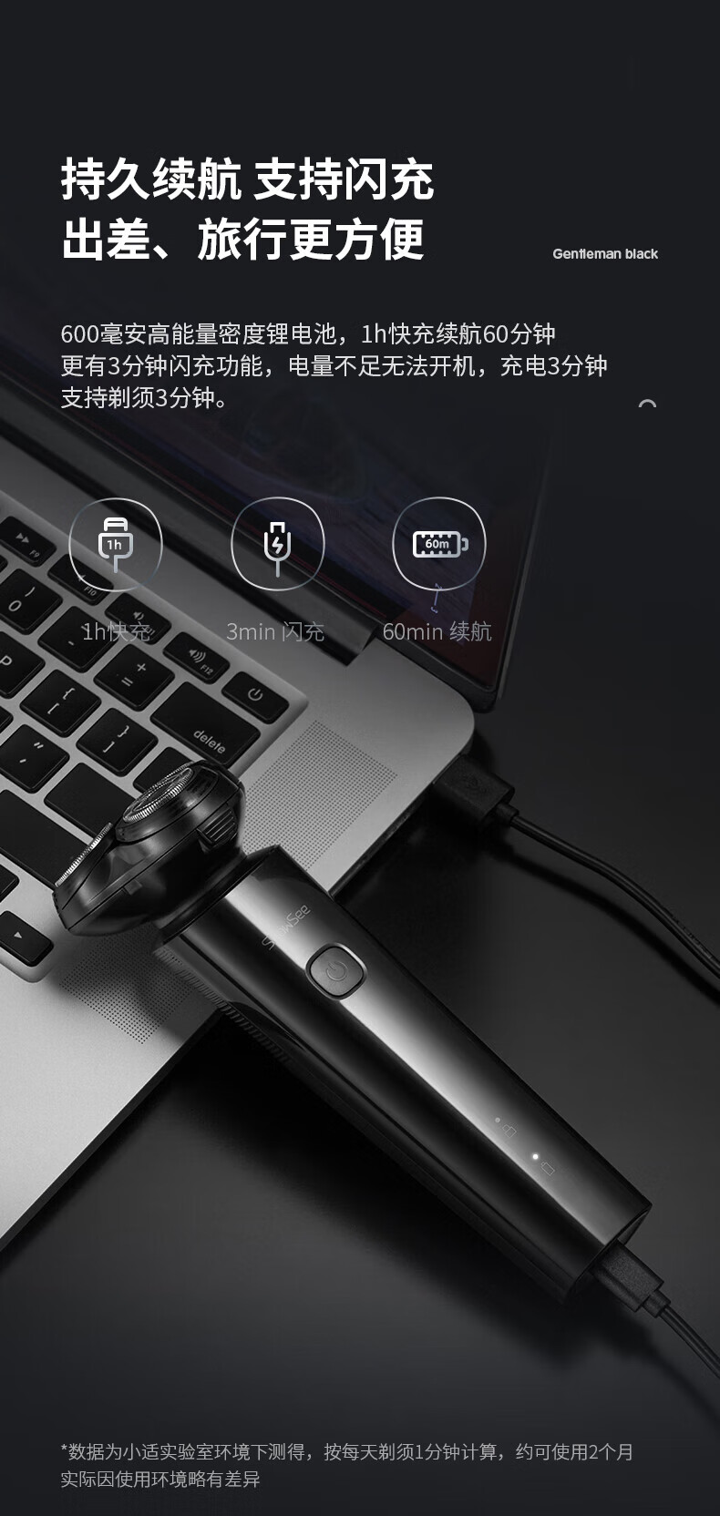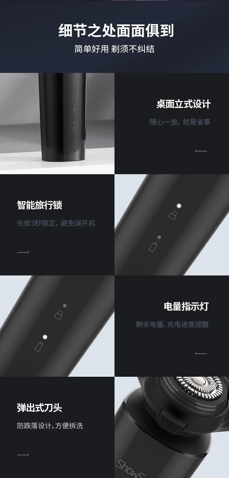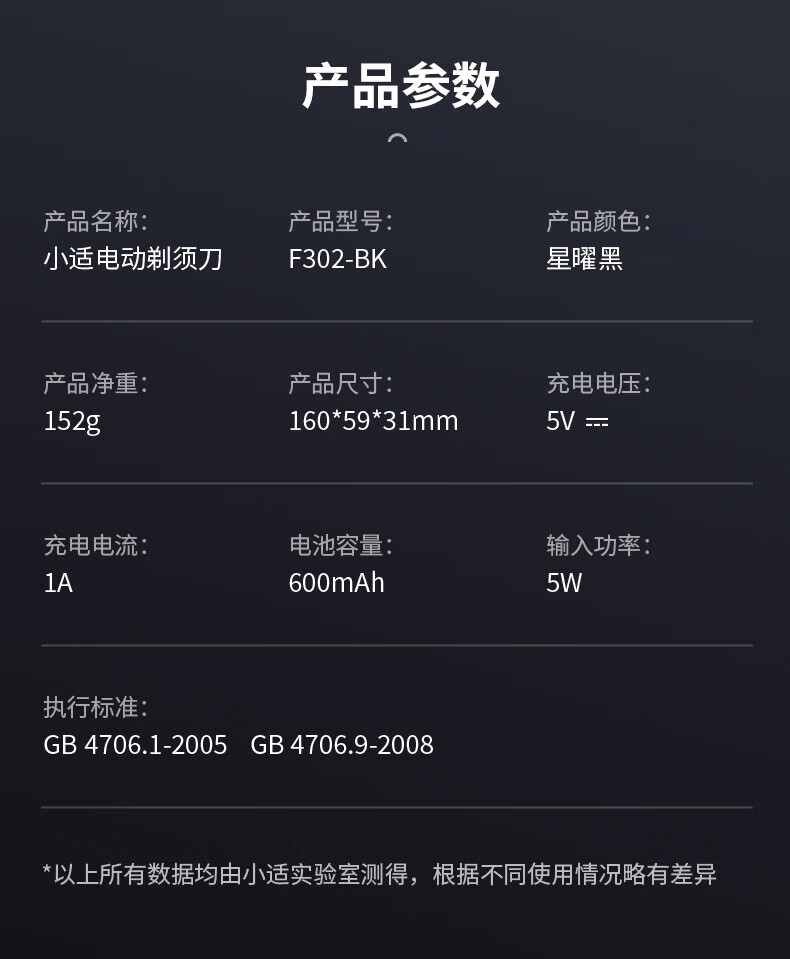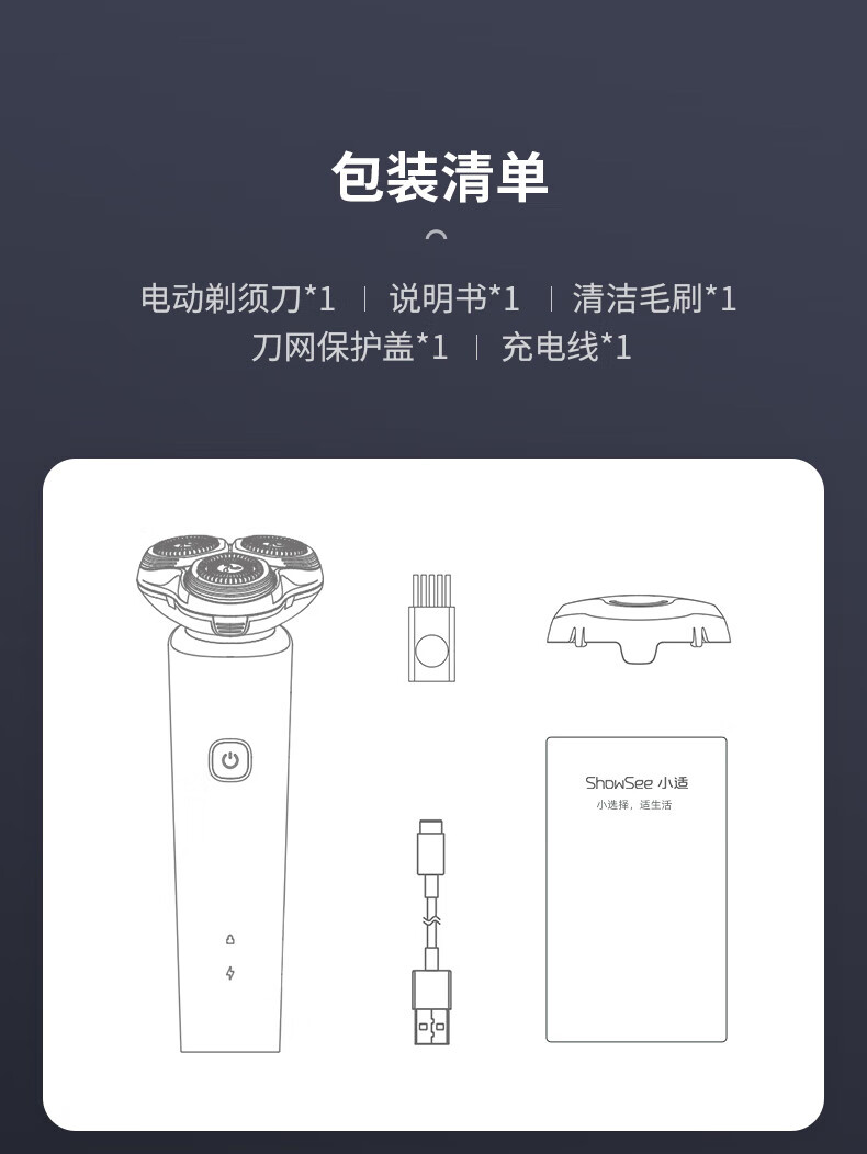 小适(showsee)小米有品剃须刀电动全身水洗剃胡刀胡须刀闪充男士刮胡刀旅行便捷生日新年礼物送男友送老公 全身水洗剃须刀F302-BK