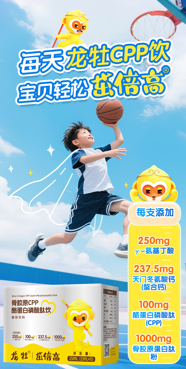 龙牡春苗·顺势生长套餐 6大盒营养棒(10支装)+6盒CPP酪蛋白磷酸肽饮,为3-17岁准备