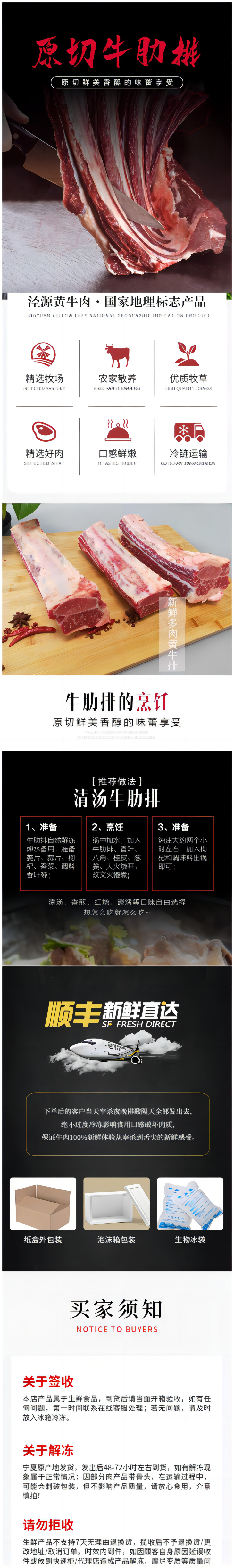【泾源黄牛肉】宁夏泾源精品牛肋排 2kg 国家农产品地理标志产品