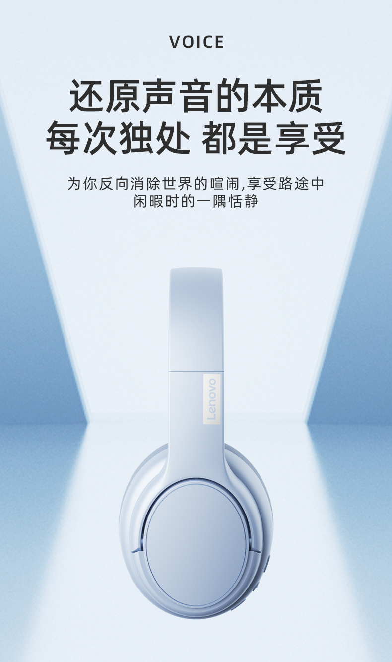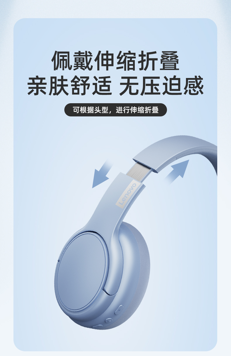 联想thinkplus 头戴式蓝牙耳机 蓝色TH20 耳麦