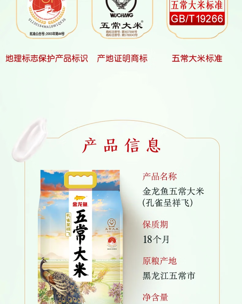 金龙鱼 孔雀呈祥飞五常大米5kg