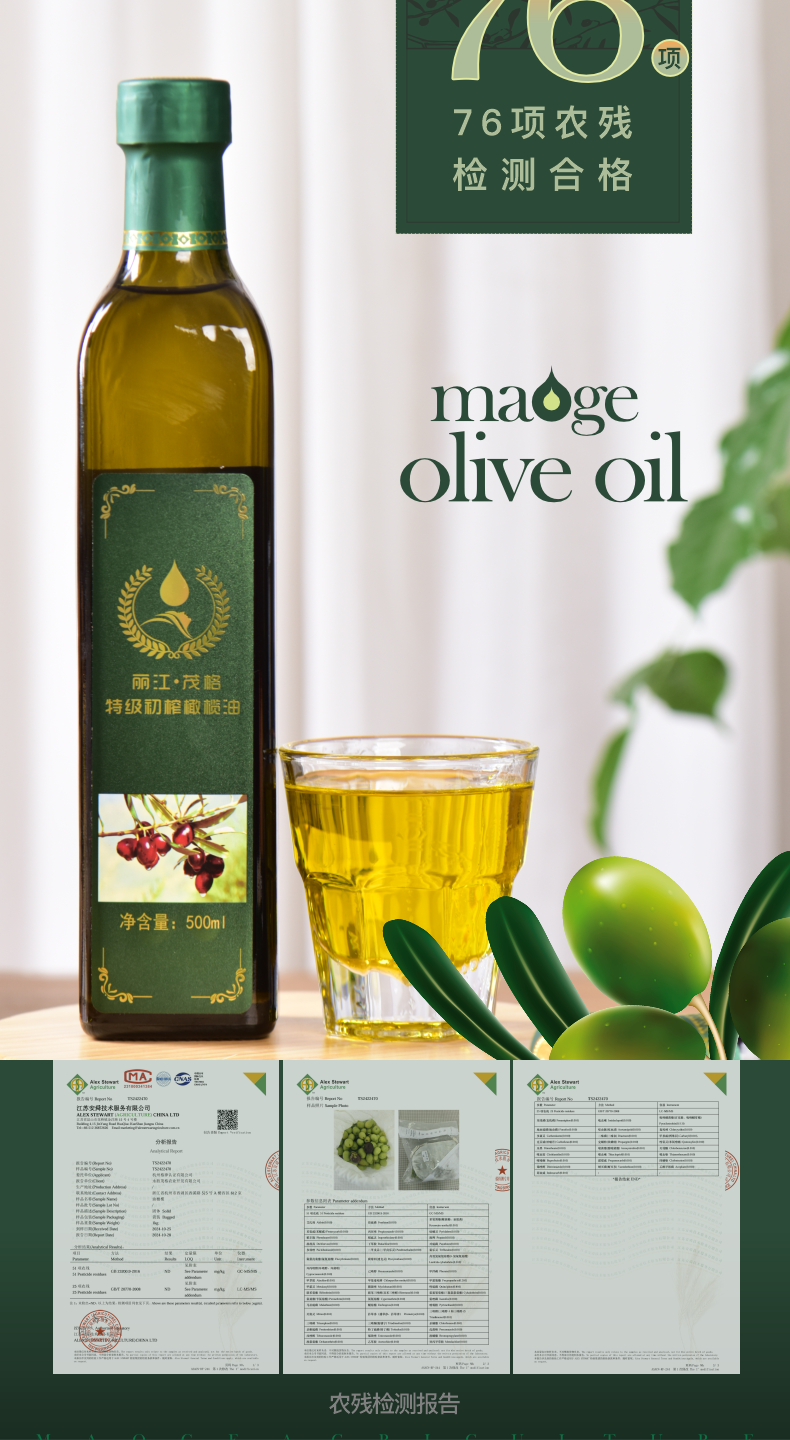 【色泽金黄】茂格 橄榄油 500ml*2瓶头道青果初榨