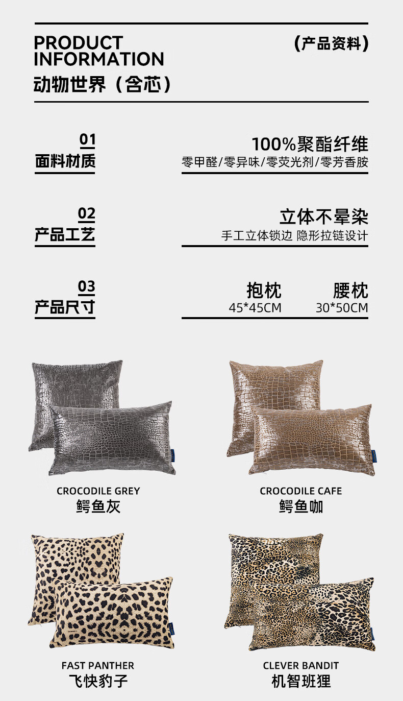 罗莱软装 动物世界抱枕 45*45cm