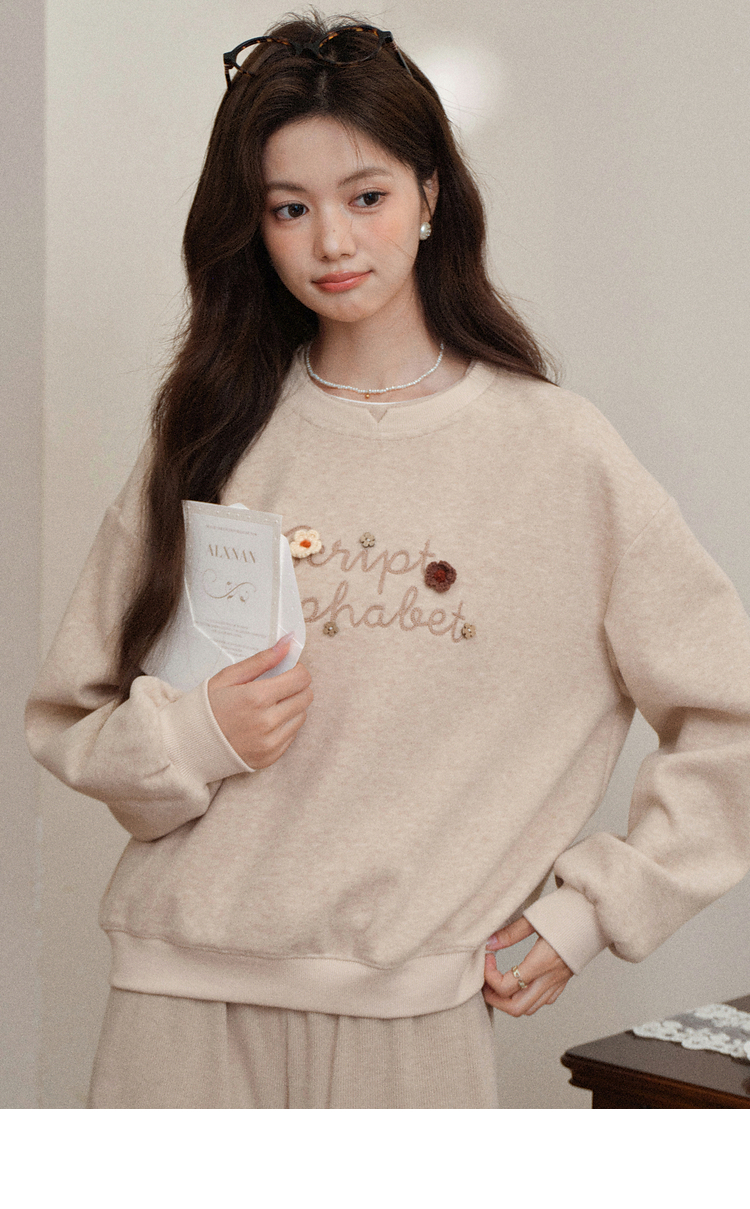 鹿向南「雏菊花语」燕麦色卫衣休闲裤时尚套装秋冬季新款两件套女
