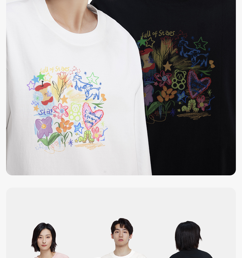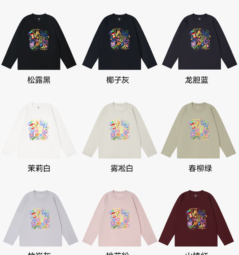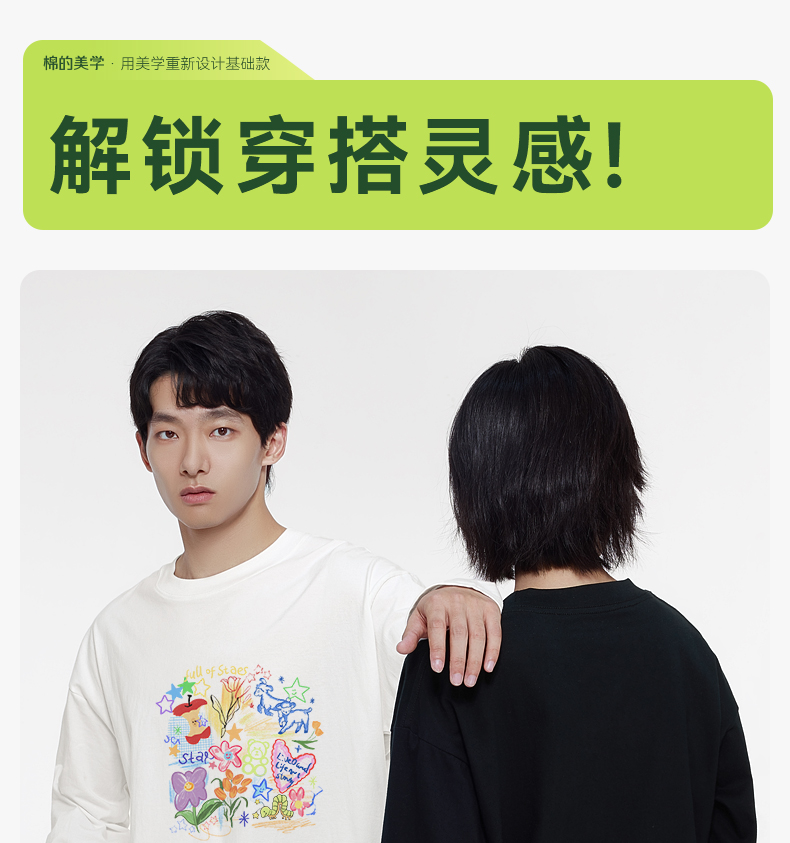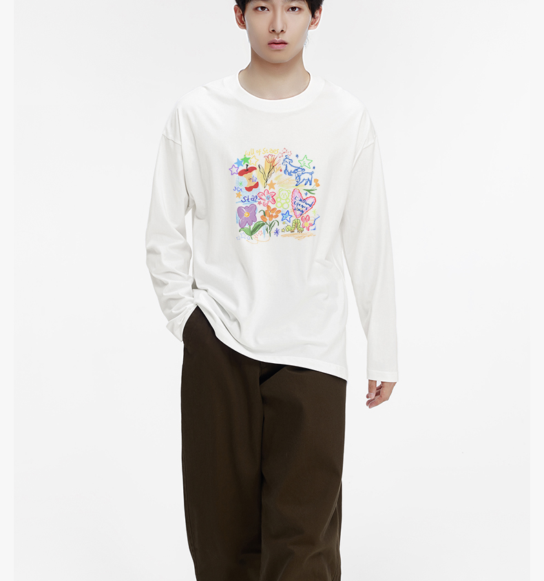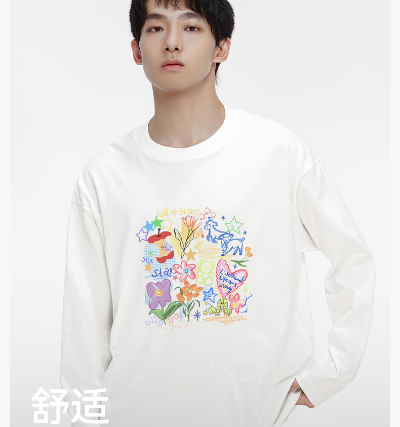 「棉的美学」手绘活力图案印花长袖T恤女秋冬宽松内搭打底衫上衣