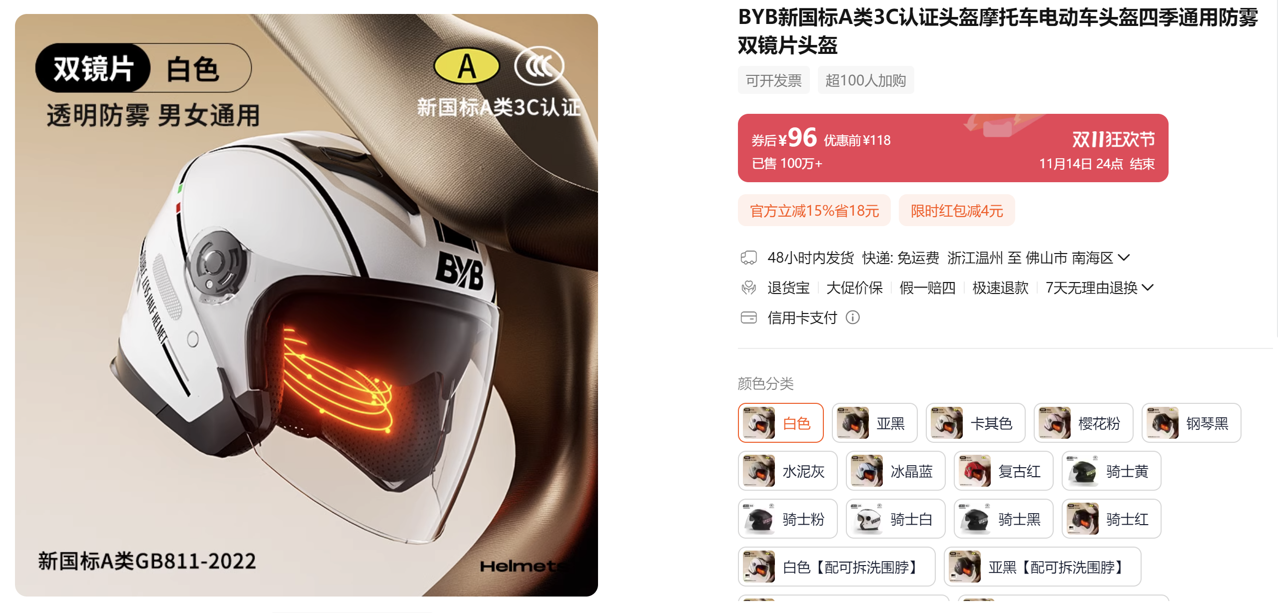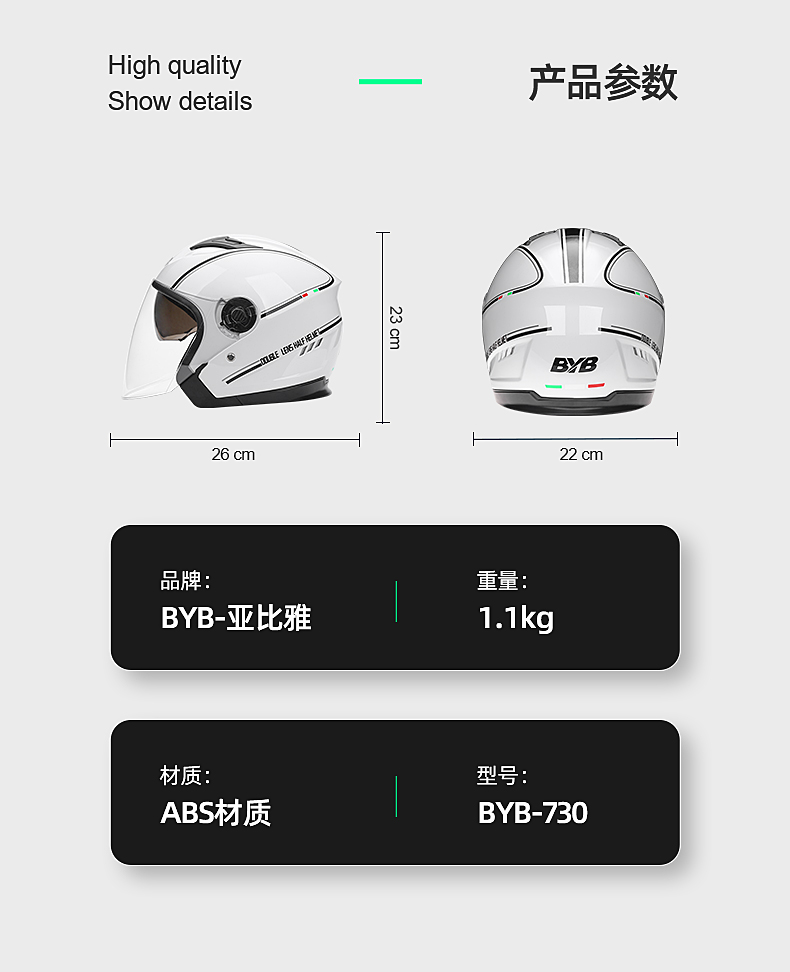 BYB 电动车摩托车头盔 双镜防雾 四季通用
