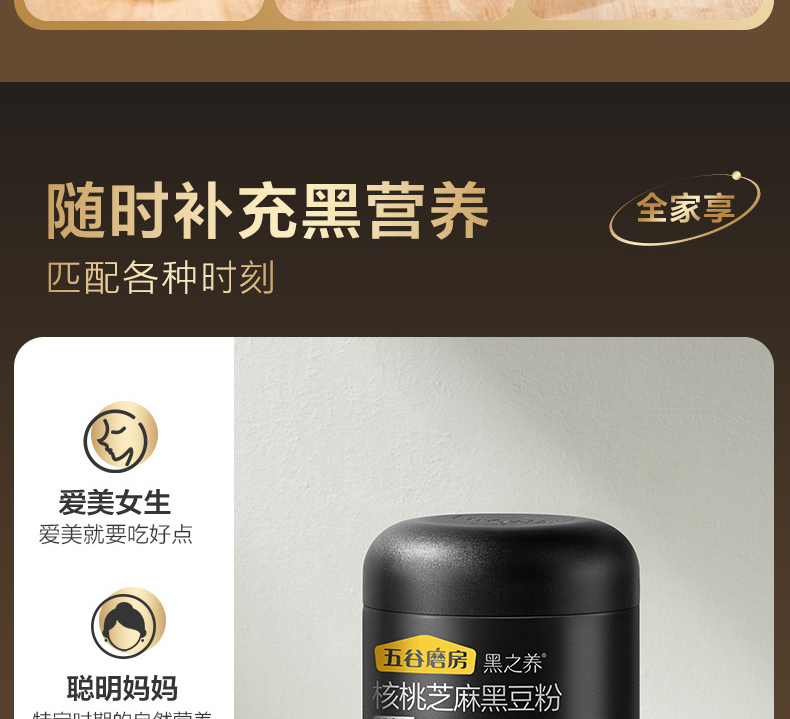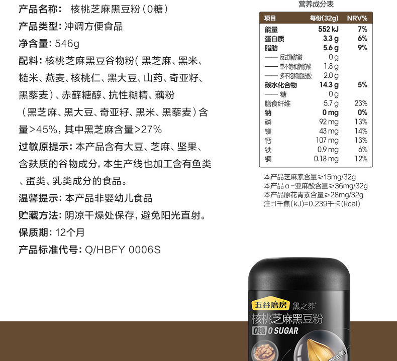 五谷磨房 无糖款核桃芝麻黑豆粉546g