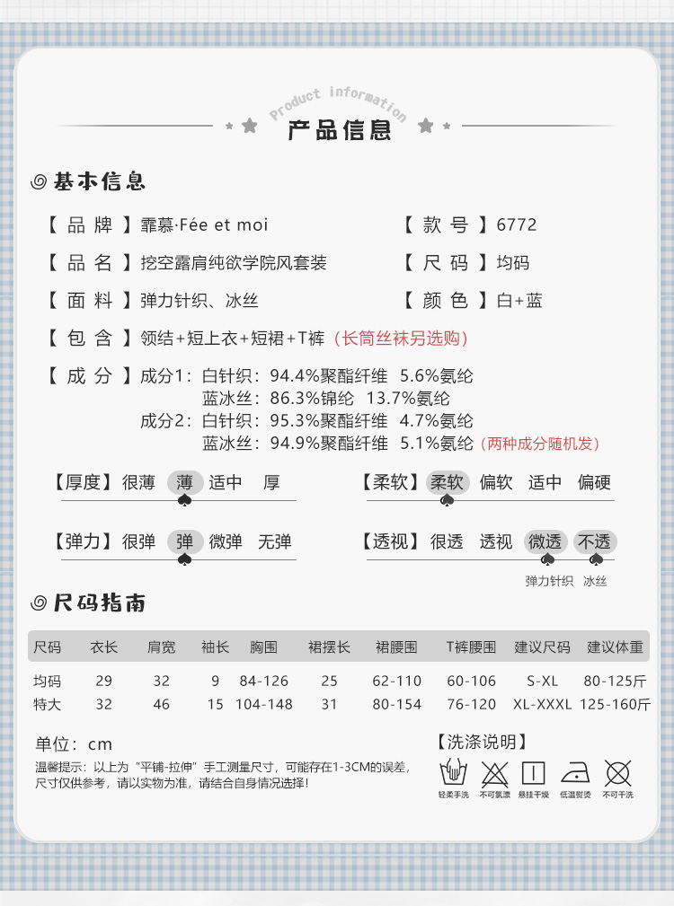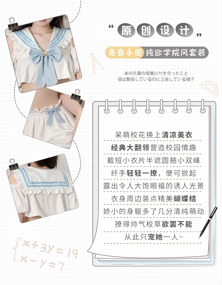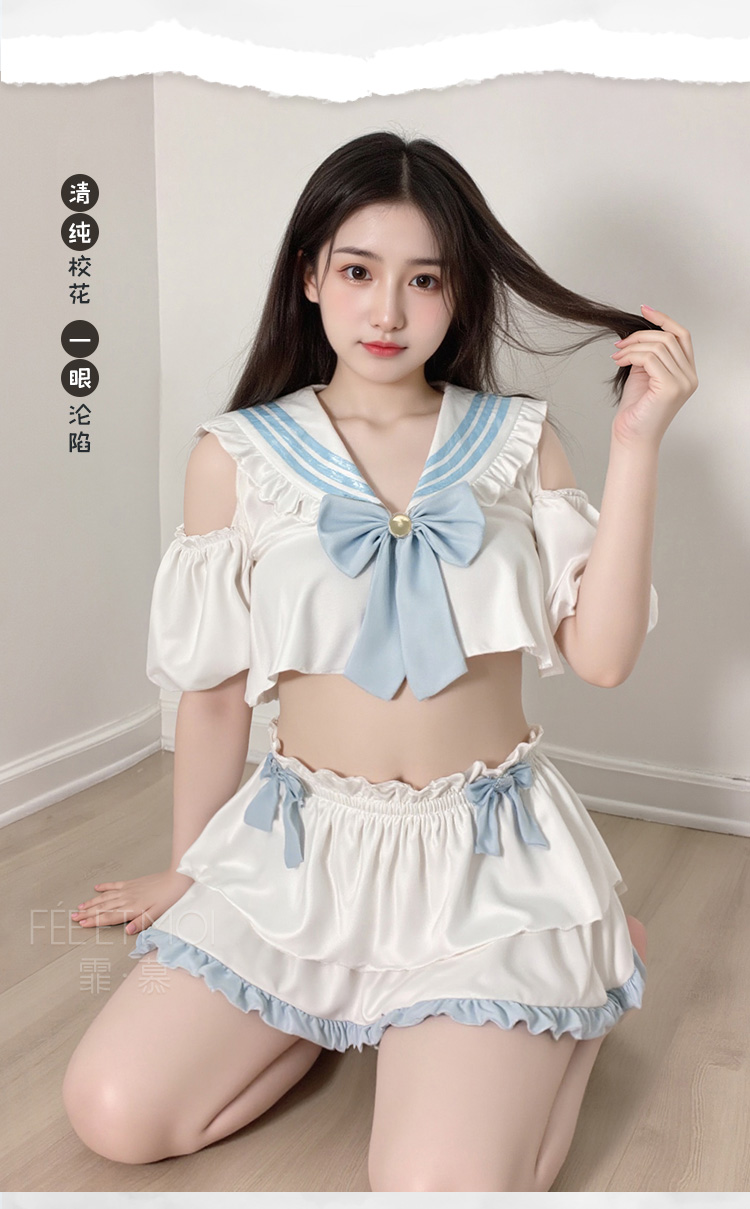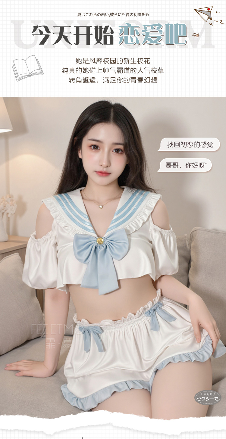 【情趣内衣】霏慕 挖空露肩纯欲学院风套装ZY6772