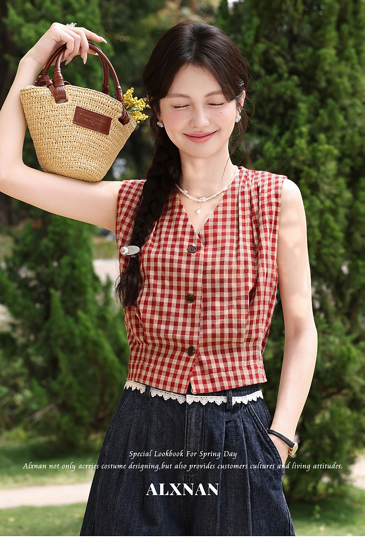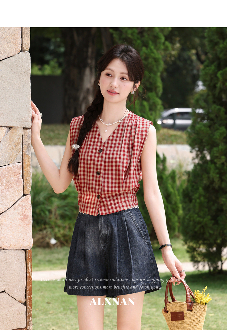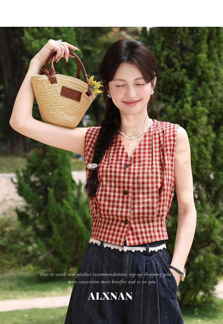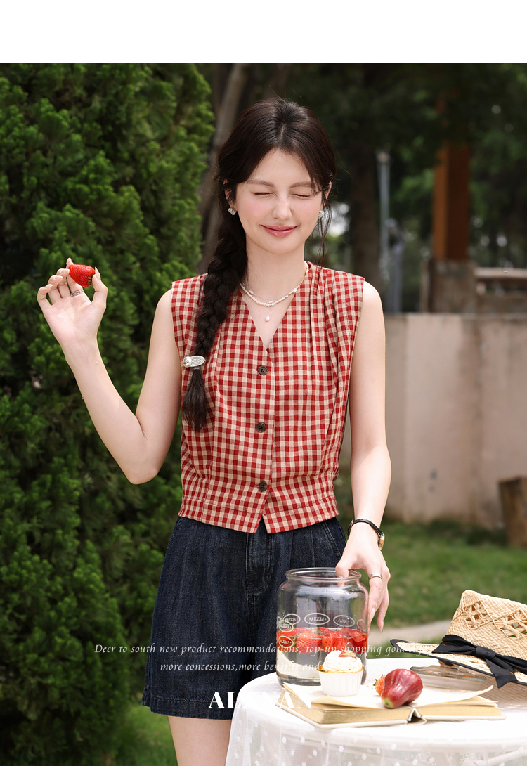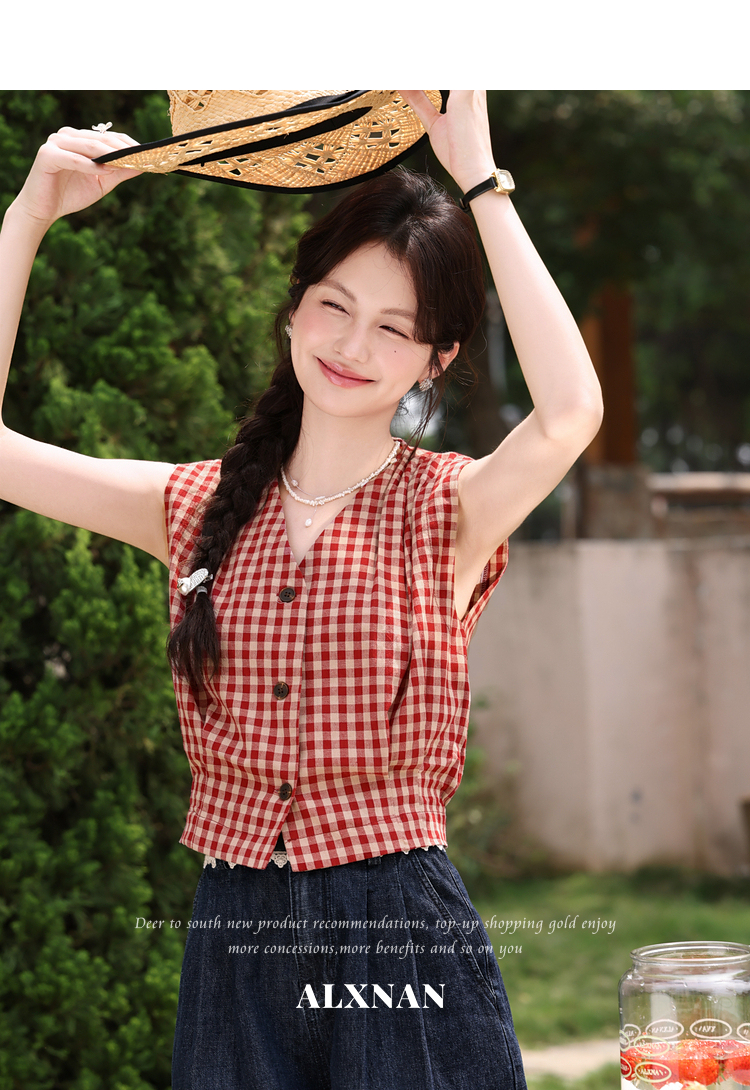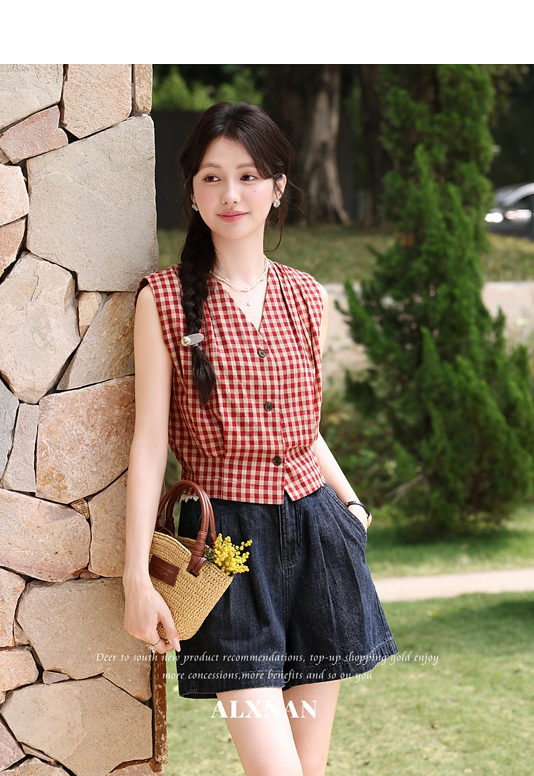 鹿向南【0417/20:00新品前1小时7折限量100件】V领红色吊带背心