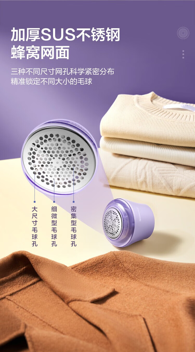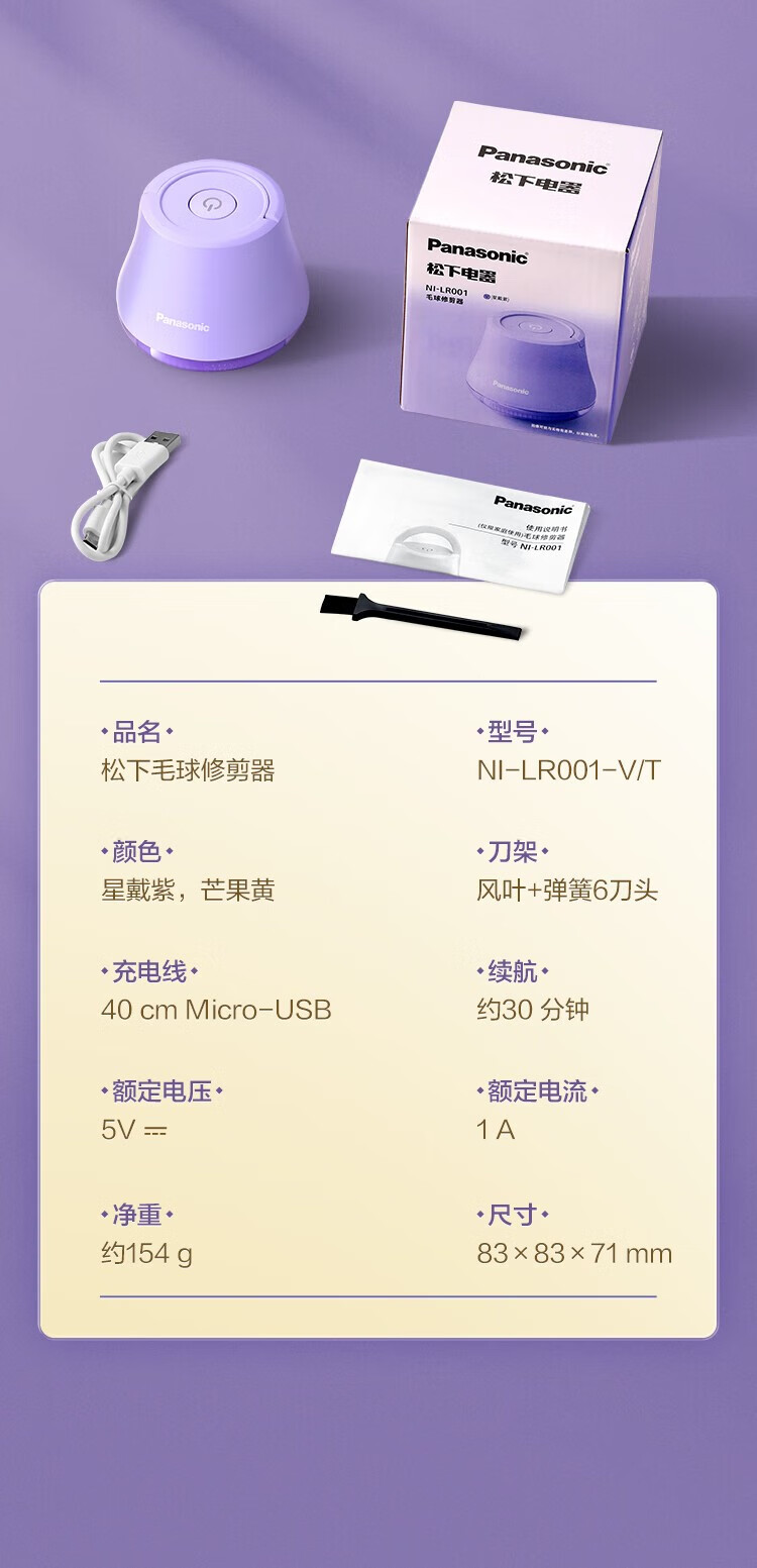 松下(Panasonic)毛球修剪器 剃毛器 衣服起球去球器 家用打毛器 刮毛器 去球神器 NI-LR001-V紫色