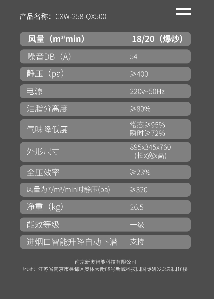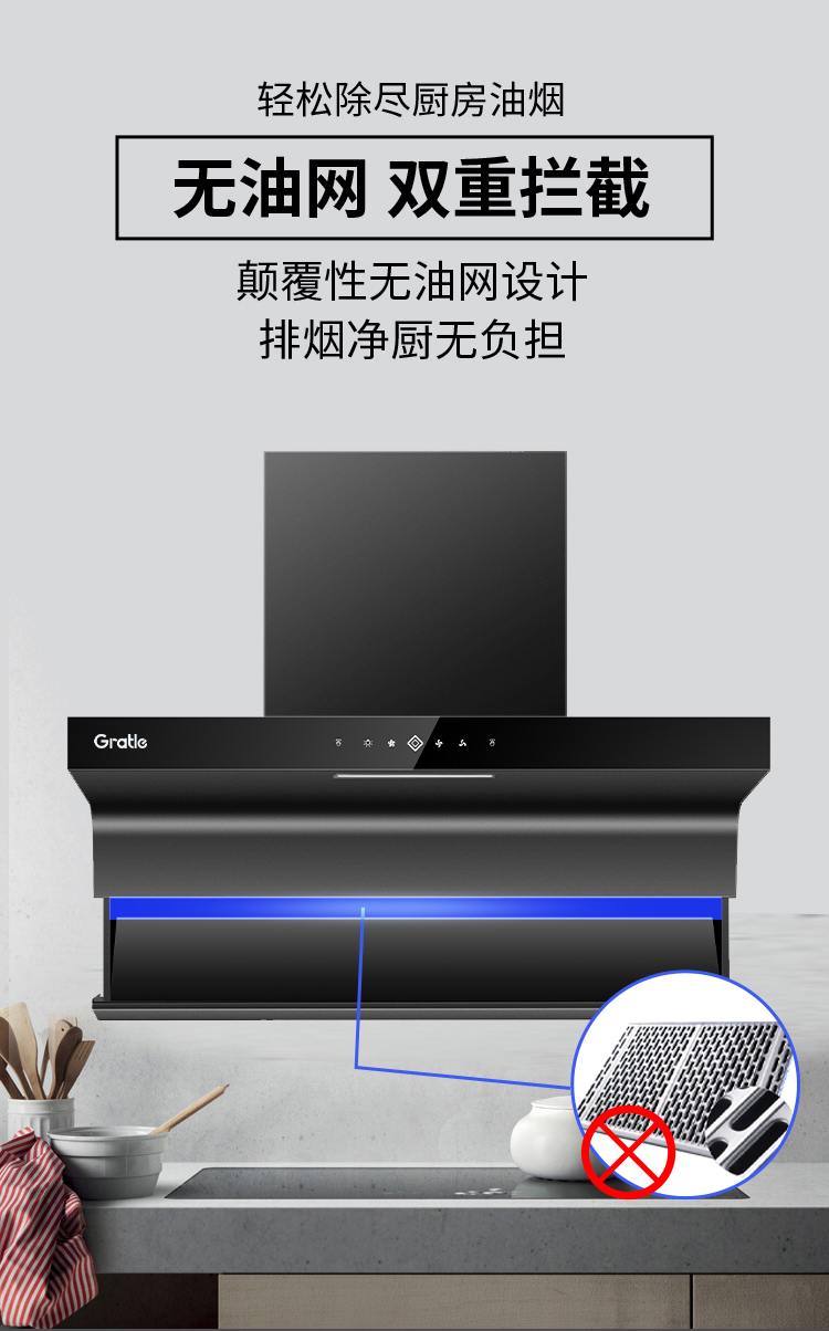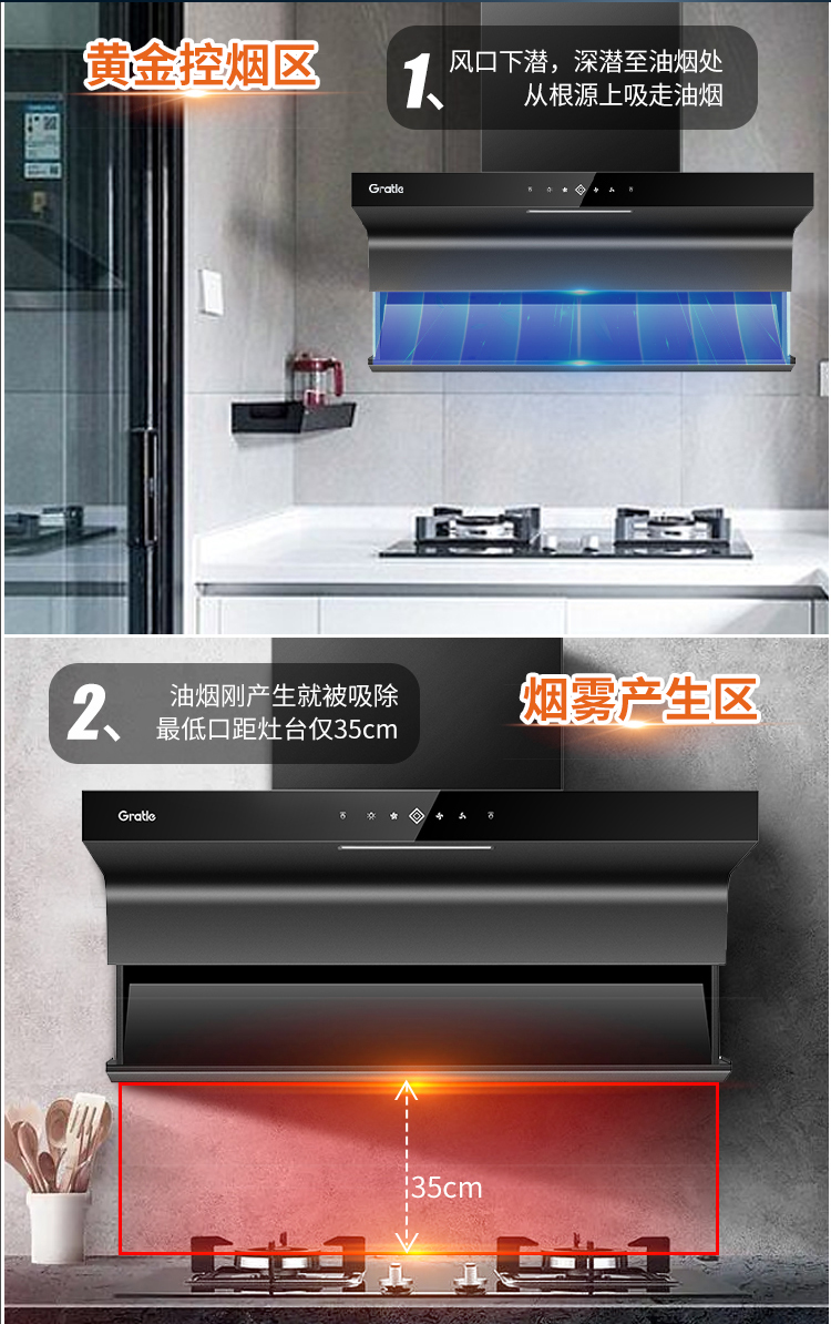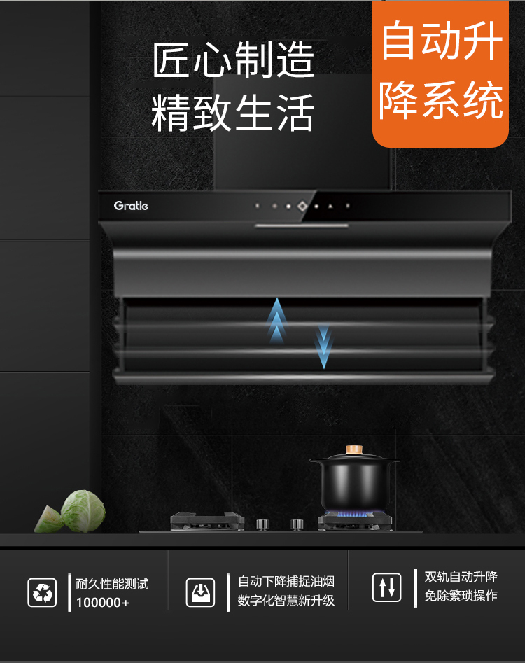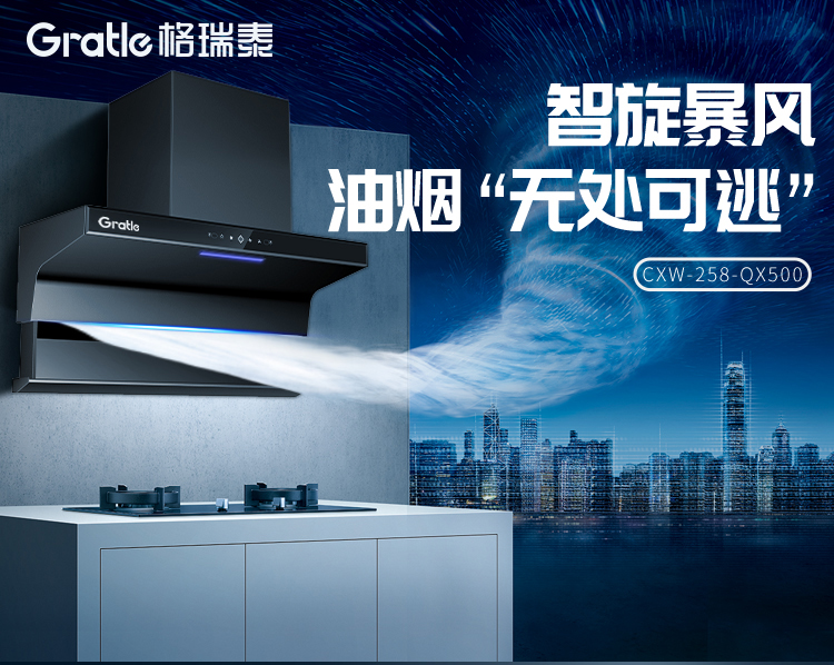 格瑞泰CXW-258-QX500 家用智能厨房 大吸力 大风量无缝集烟