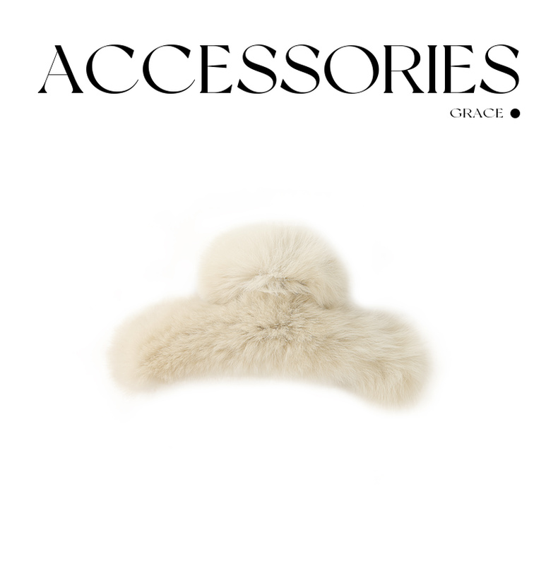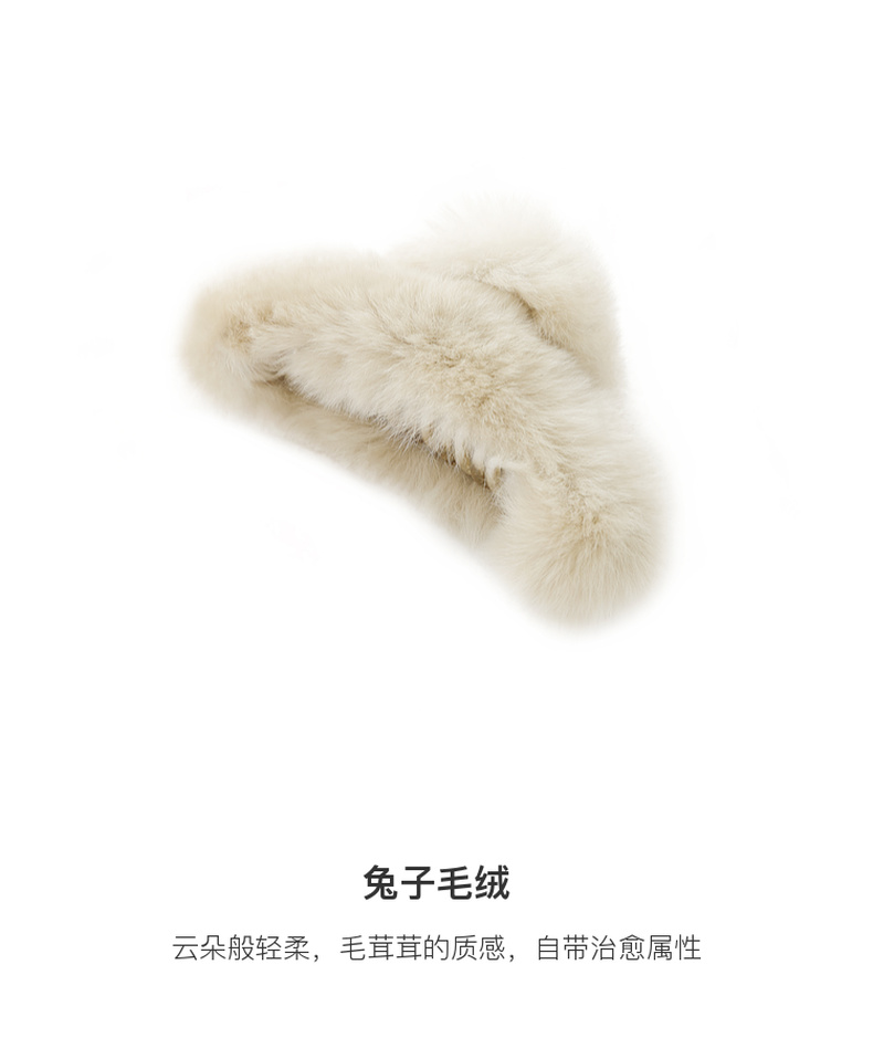 三彩2025新款温柔系兔毛绒带抓发夹通勤约会头饰甜美浅卡其浪漫女