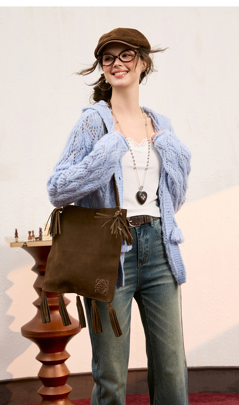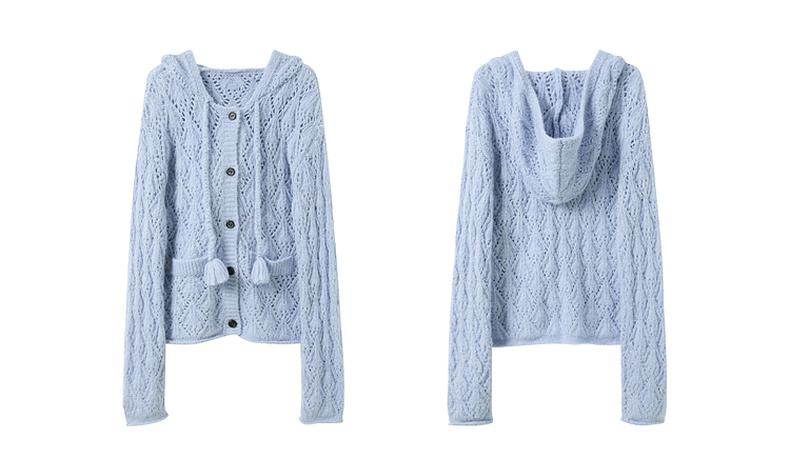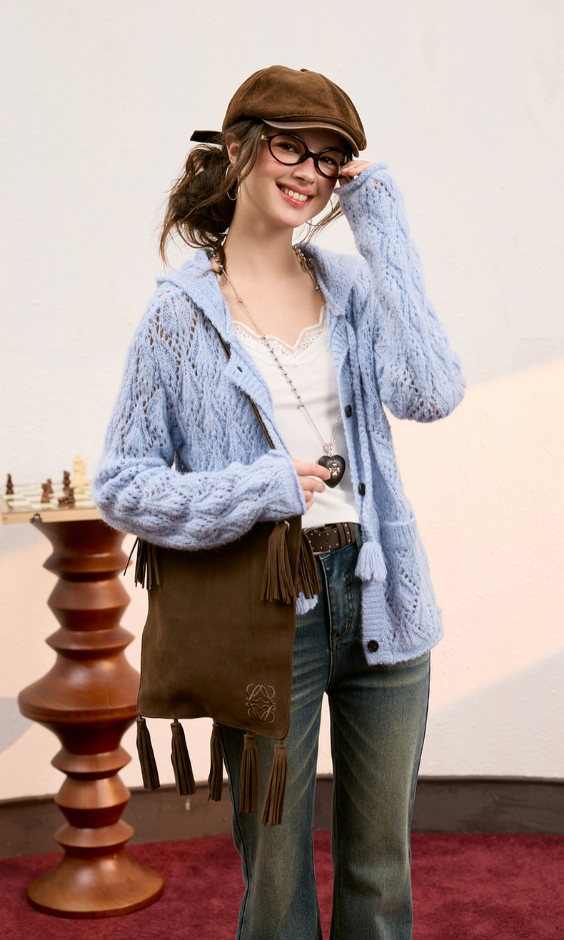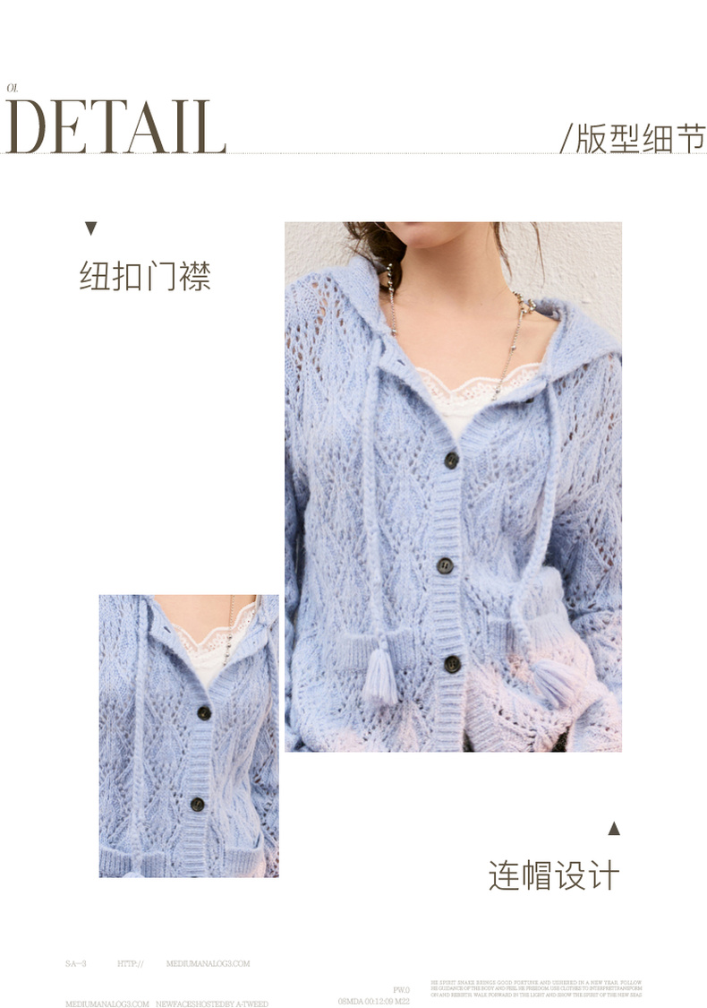 三彩独醒2025秋季新款复古镂空针织衫毛衫休闲连帽开衫小个子F
