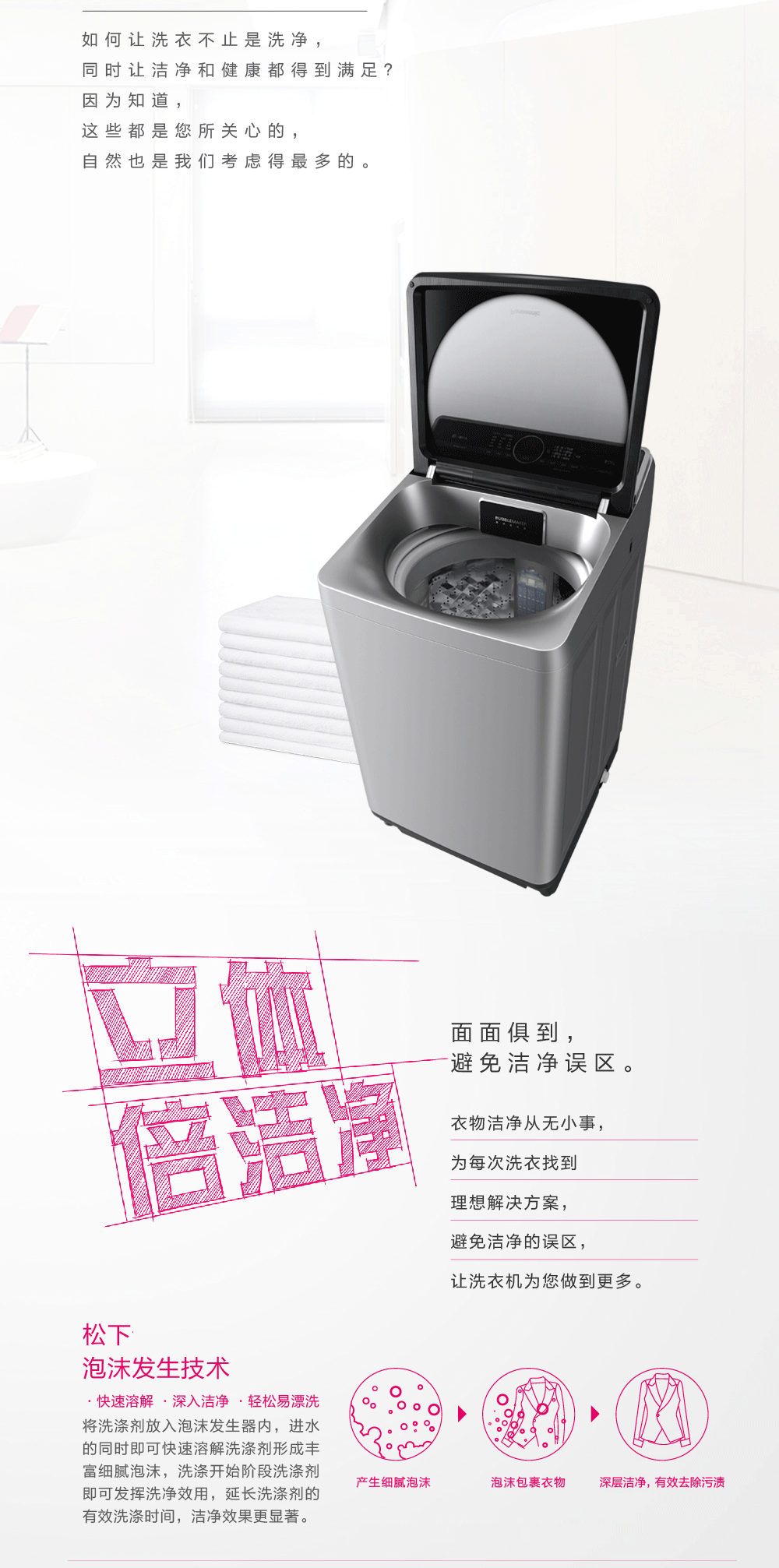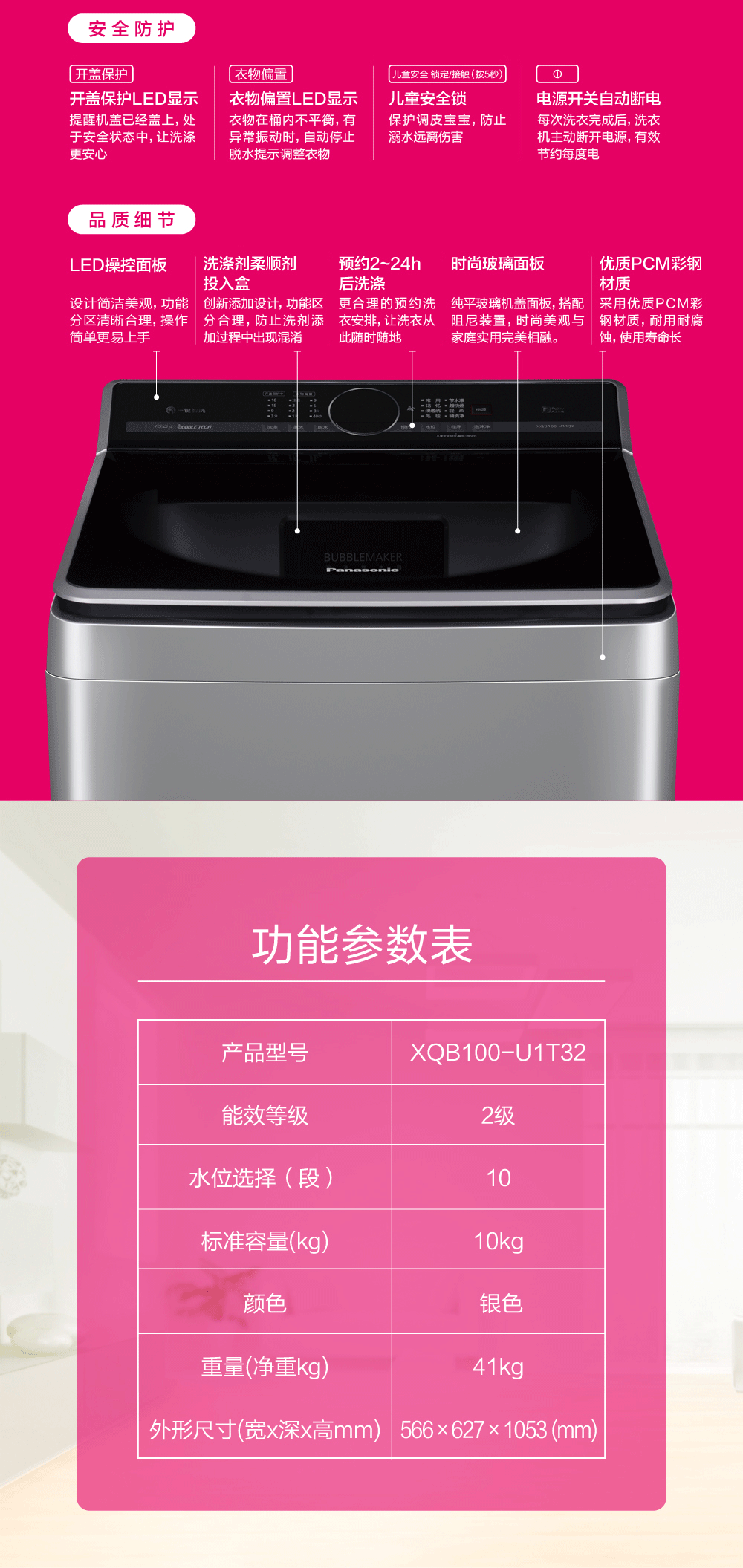 松下XQB100-U1T32 全自动波轮洗衣机 不弯腰设计 一键智能洗 泡沫净 钢化玻璃盖板 大容量 银灰色XQB100-U1T32泡沫净