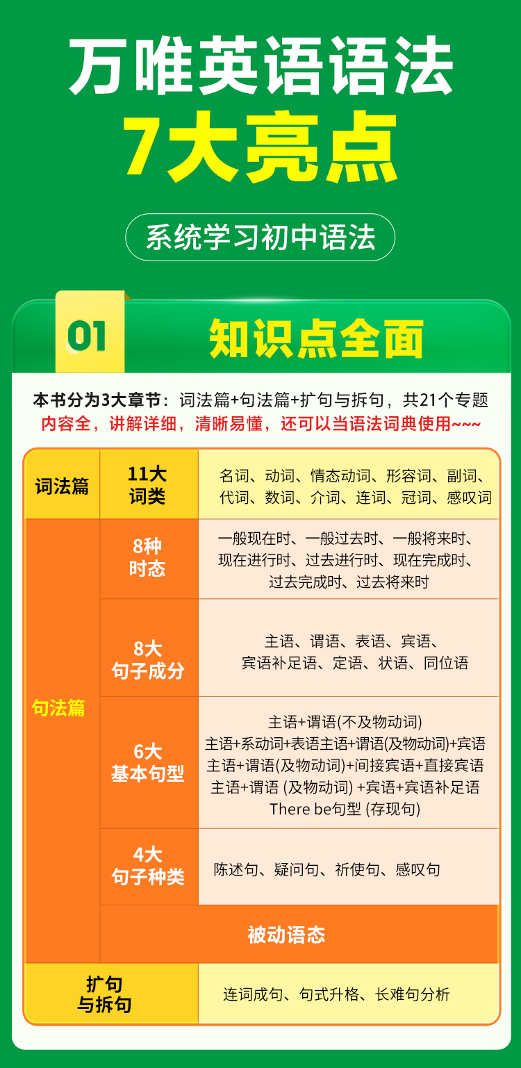 【会员专享】2025新版万唯中考初中英语语法全解专项训练知识点大全基础书初一初二初三七八九年级语法完形阅读练习题总复习万维教育辅导