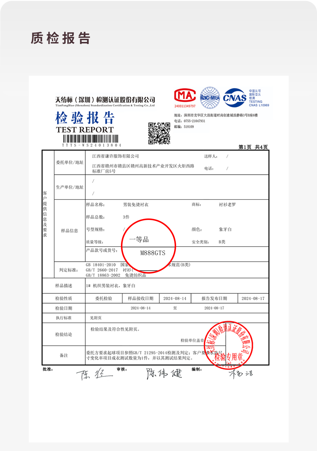 【凌志T8】奋斗者同款100支DP纯棉长袖衬衫M888GTS