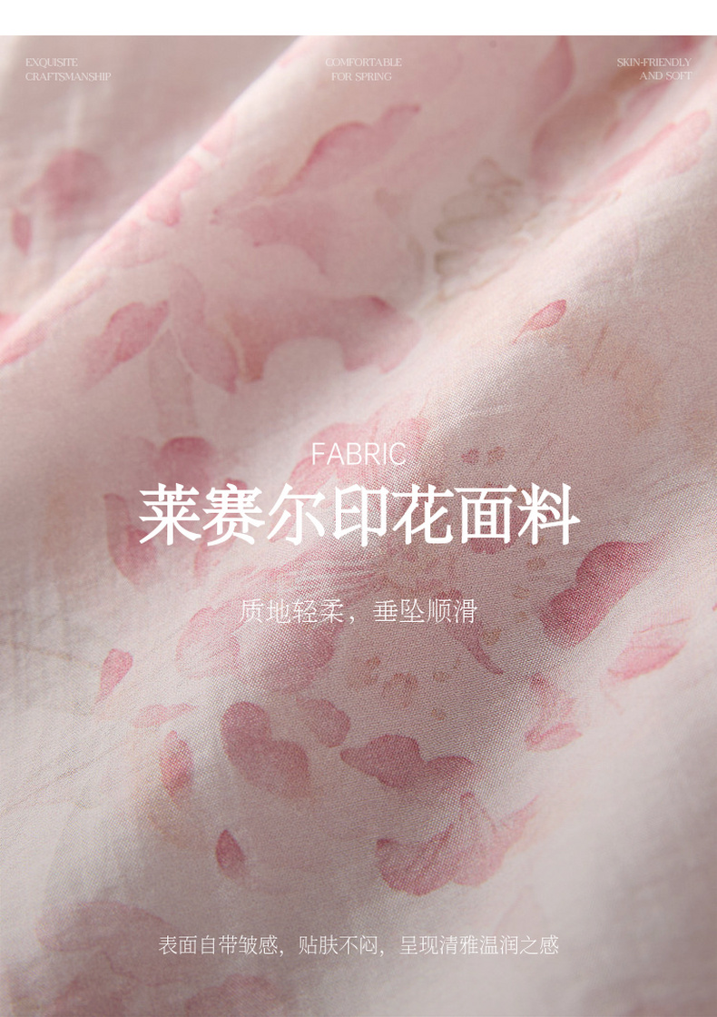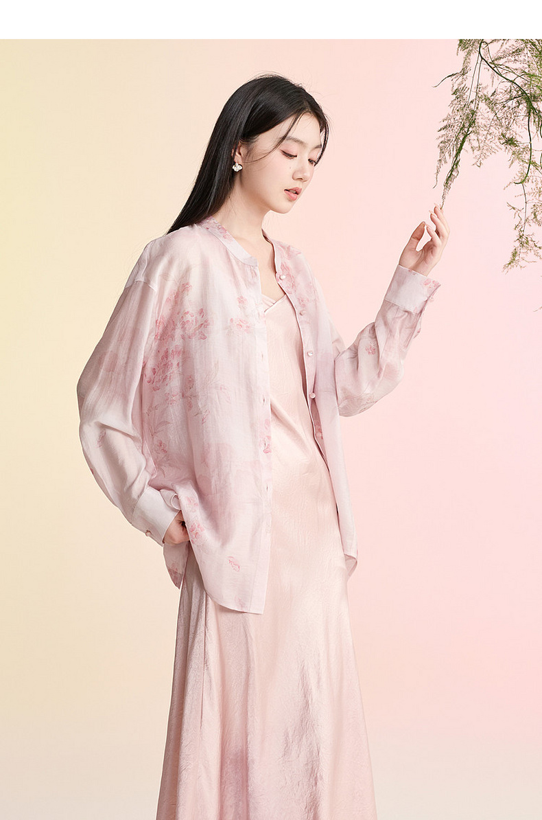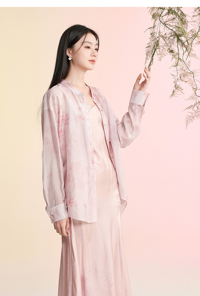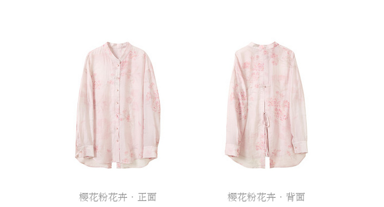 三彩【雨霁山樱】2026春季新款新中式莱赛尔宽松衬衫中长开衫C