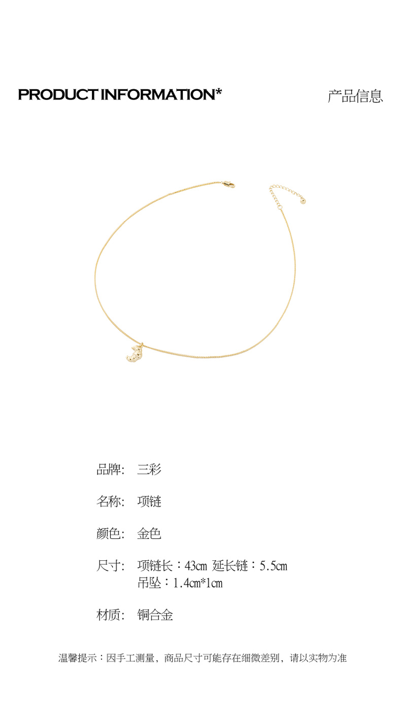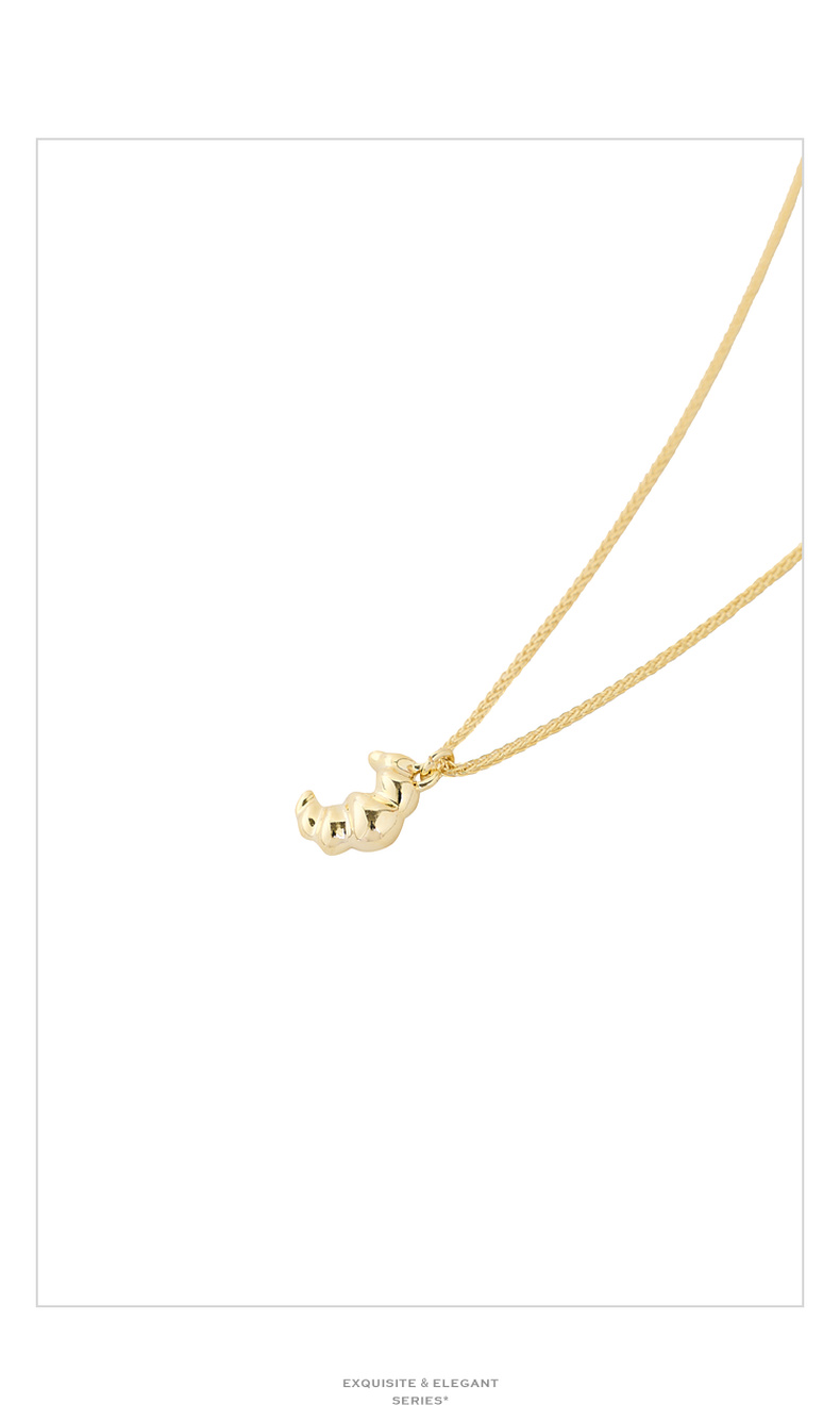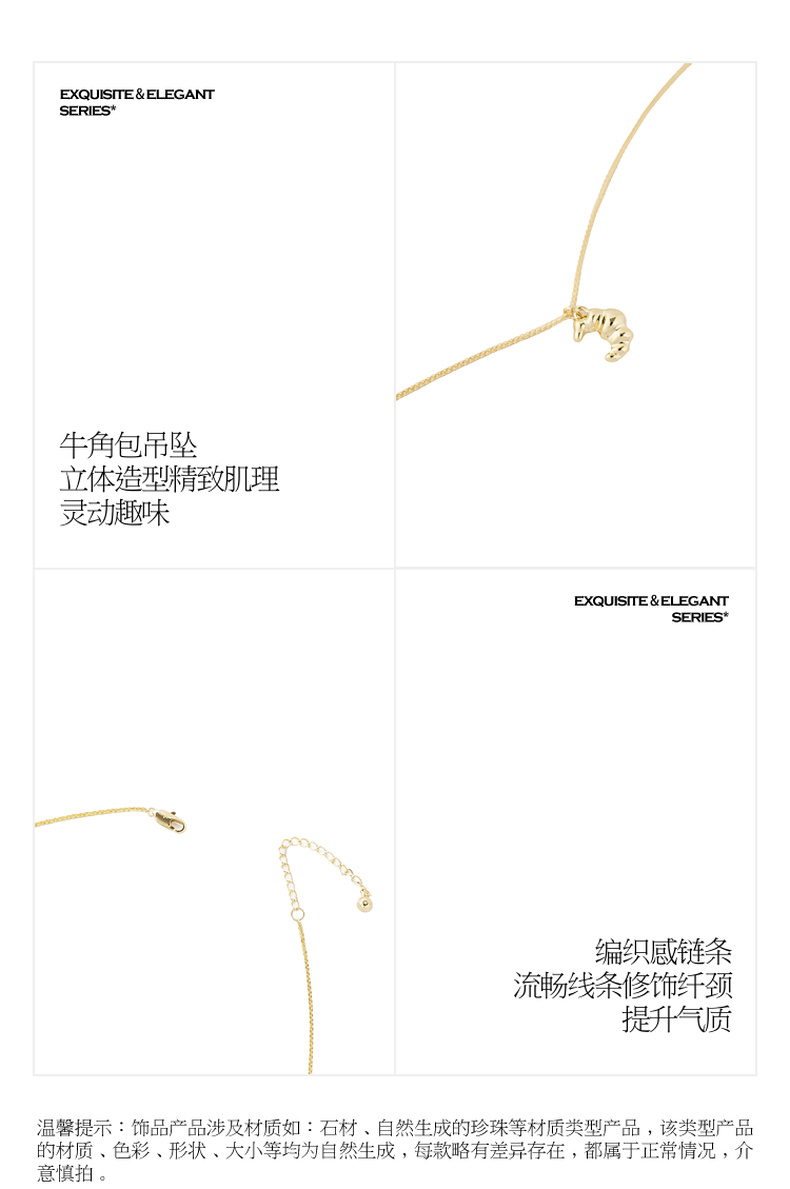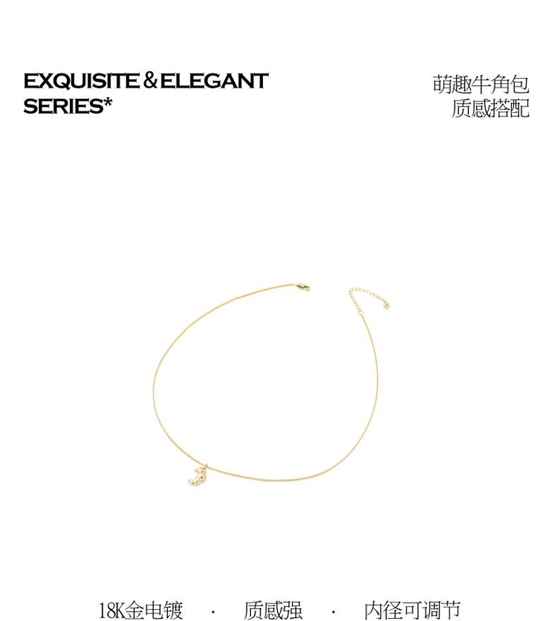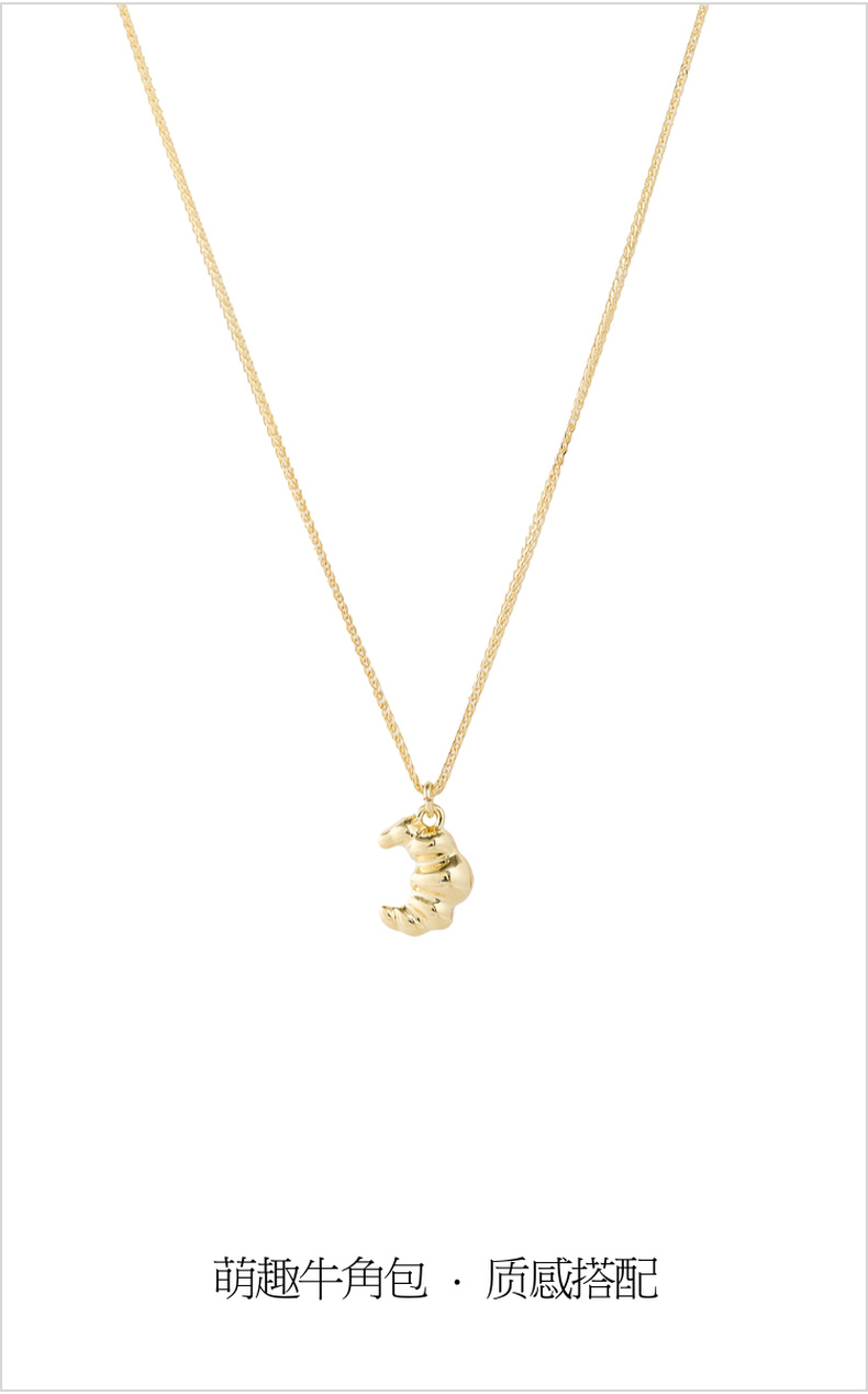 三彩2026新款牛角包吊坠项链美食系萌趣锁骨链通勤出游减龄轻复古