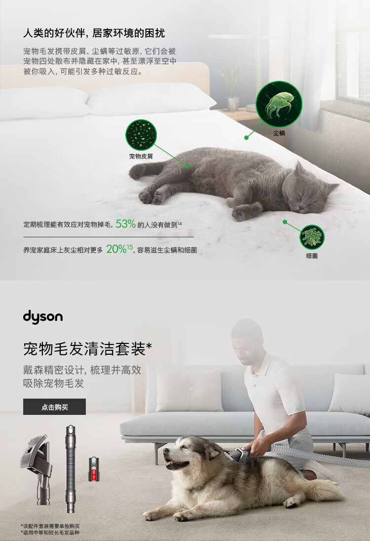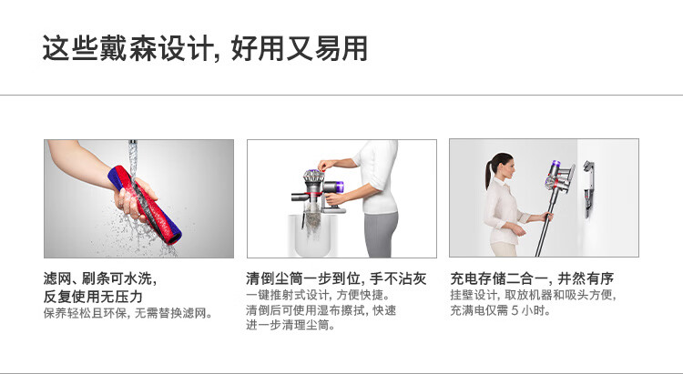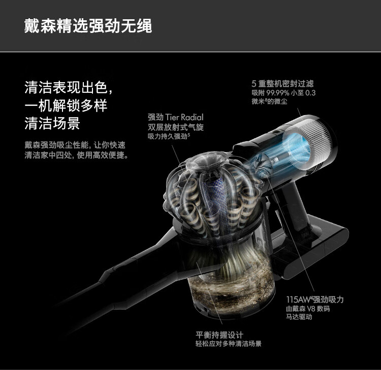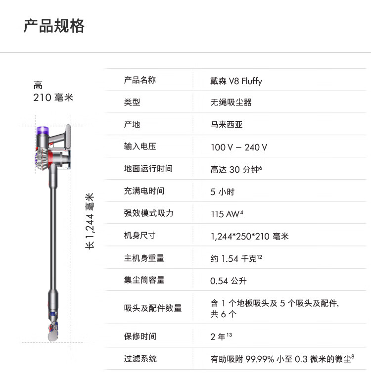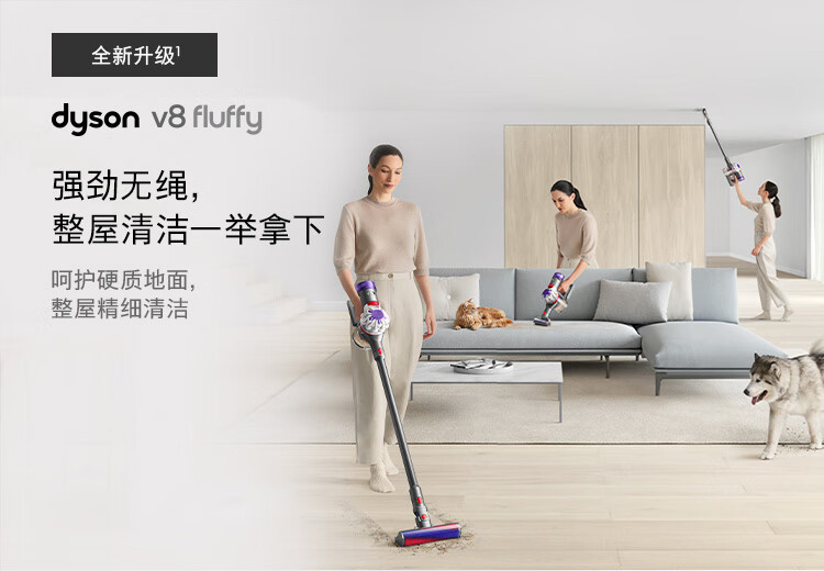 戴森(Dyson) V8 Fluffy无绳吸尘器(新一代银色)手持无线 除螨 宠物 家庭适用