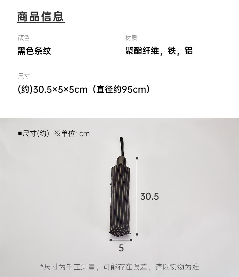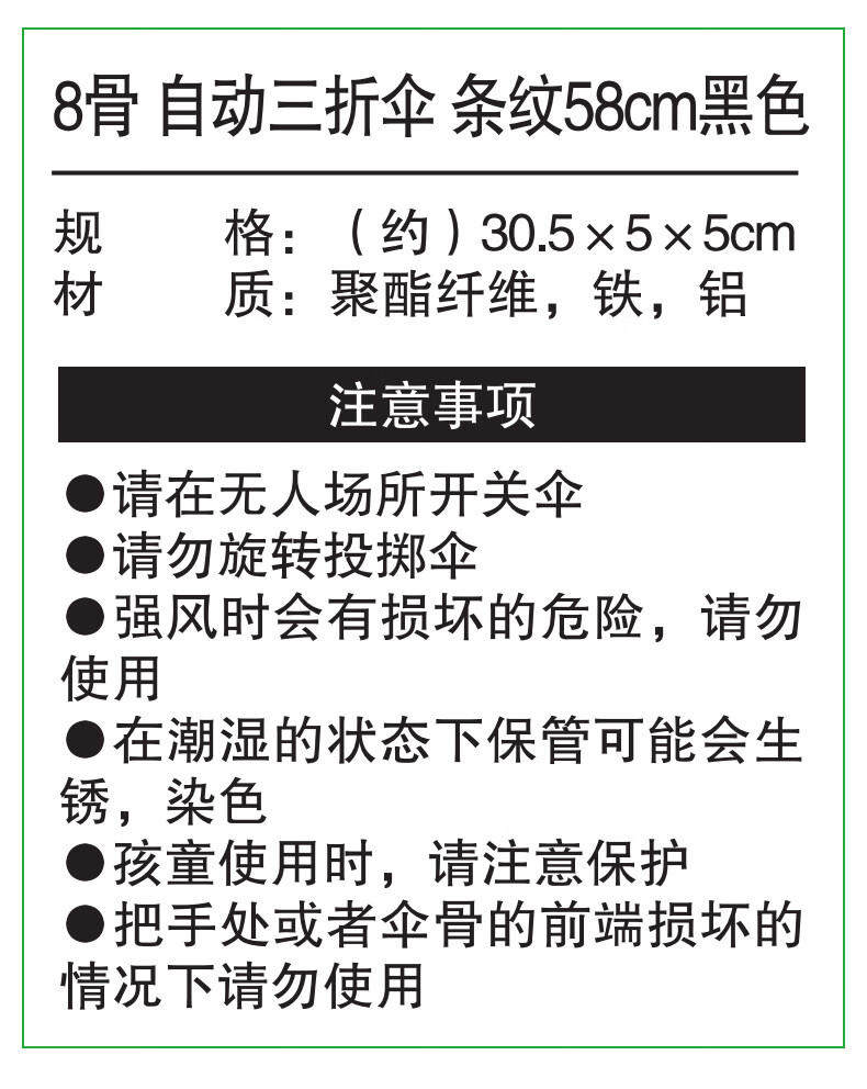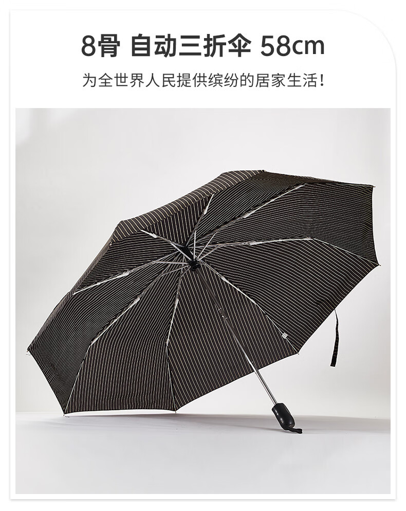8骨 自动三折伞 条纹58㎝黑色