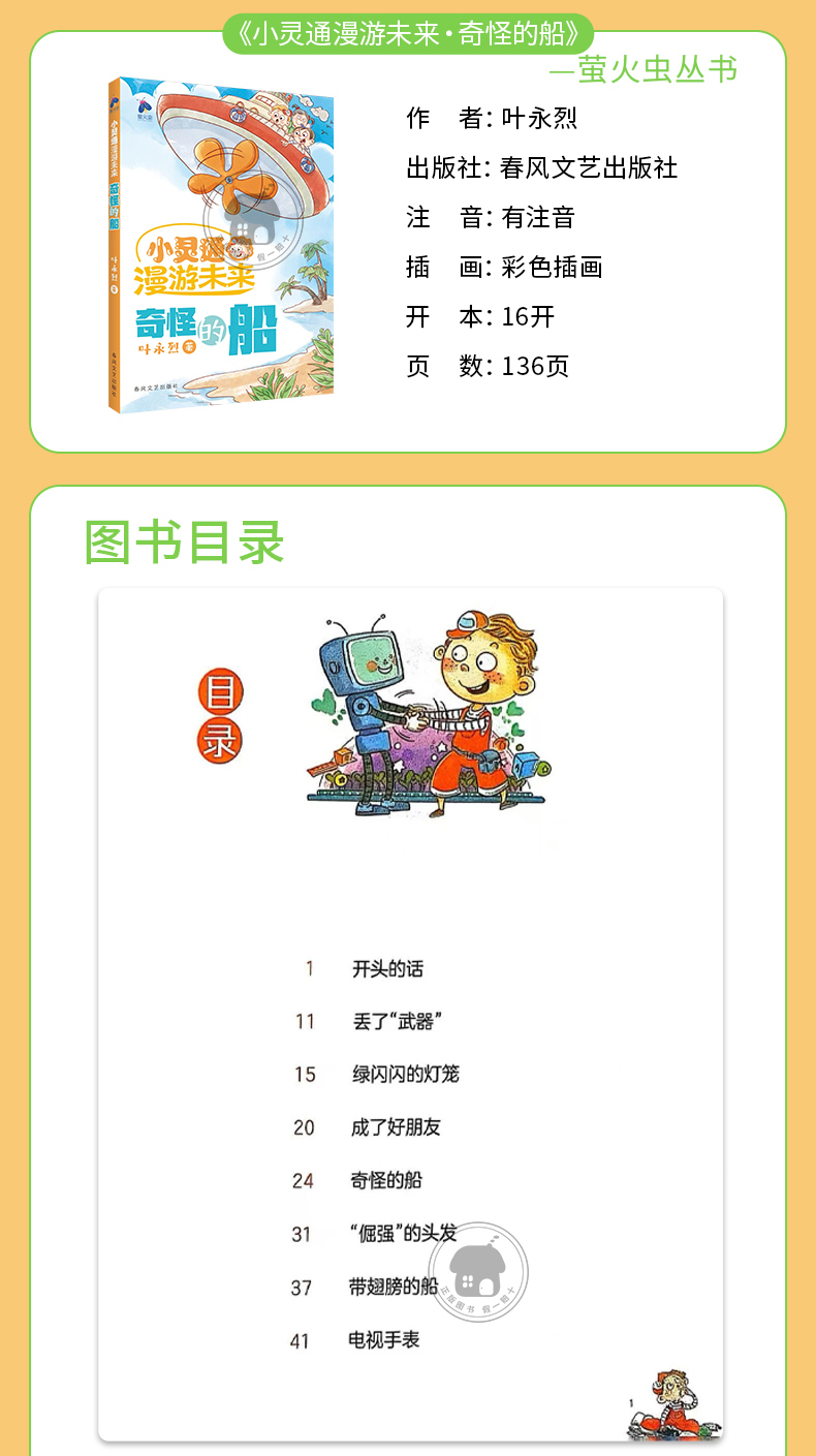 小灵通漫游未来·奇怪的船萤火虫丛书叶永烈著春风文艺出版社二年级注音版