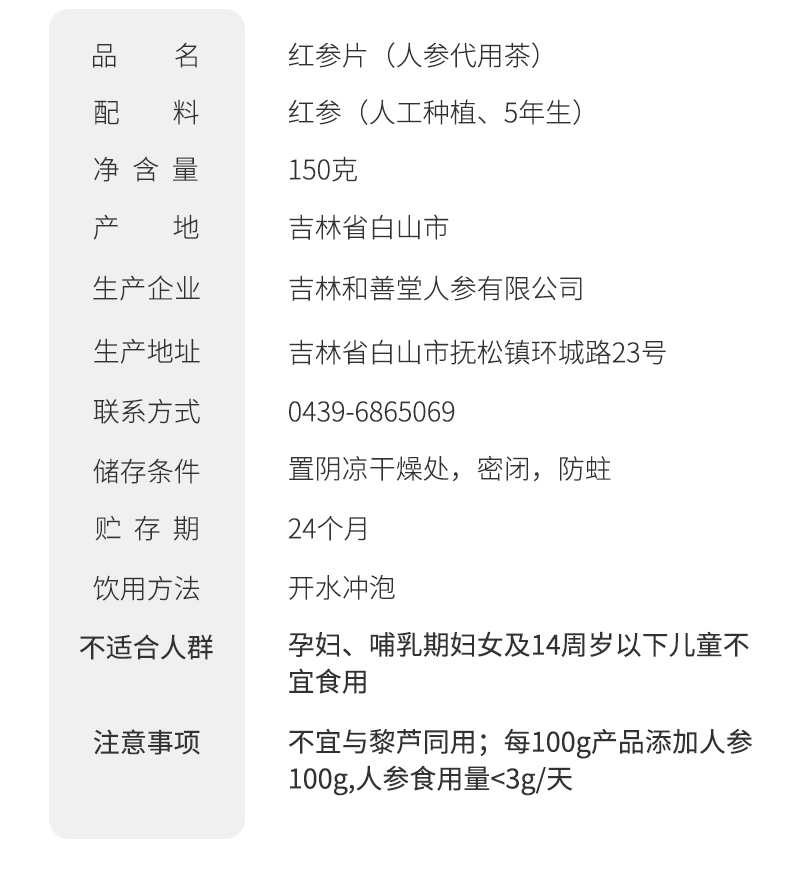 华润堂 红参片(人参代用茶) 150克