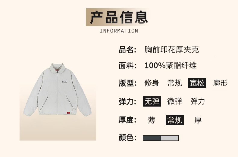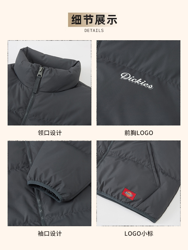 Dickies男装棉服冬季宽松立领时尚潮流简约保暖休闲加厚面包服DK0A88AN