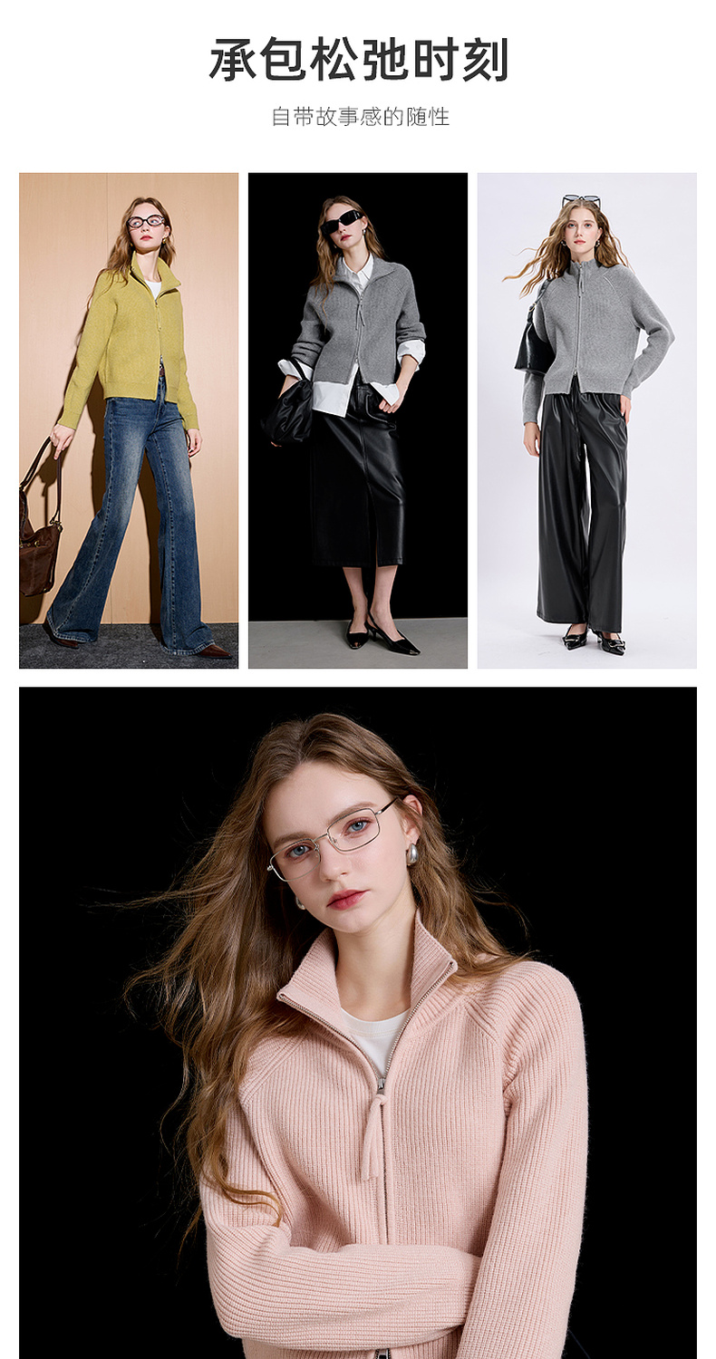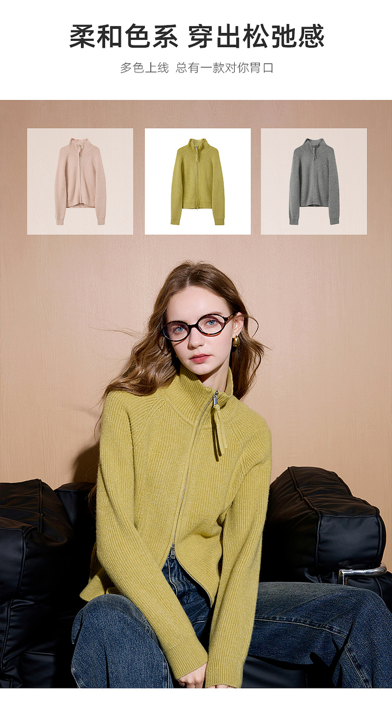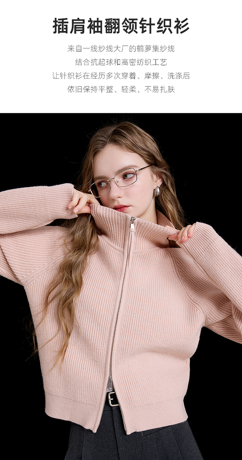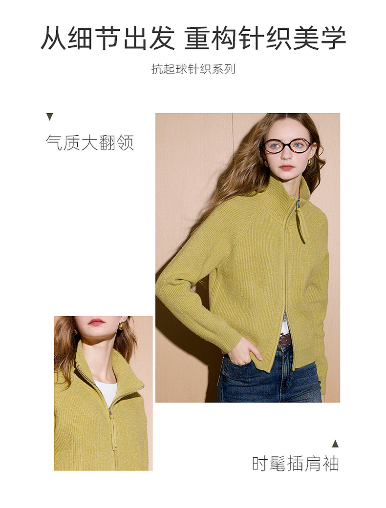 【抗起球】三彩2025冬季新款翻领插肩袖开衫宽松针织衫休闲简约M