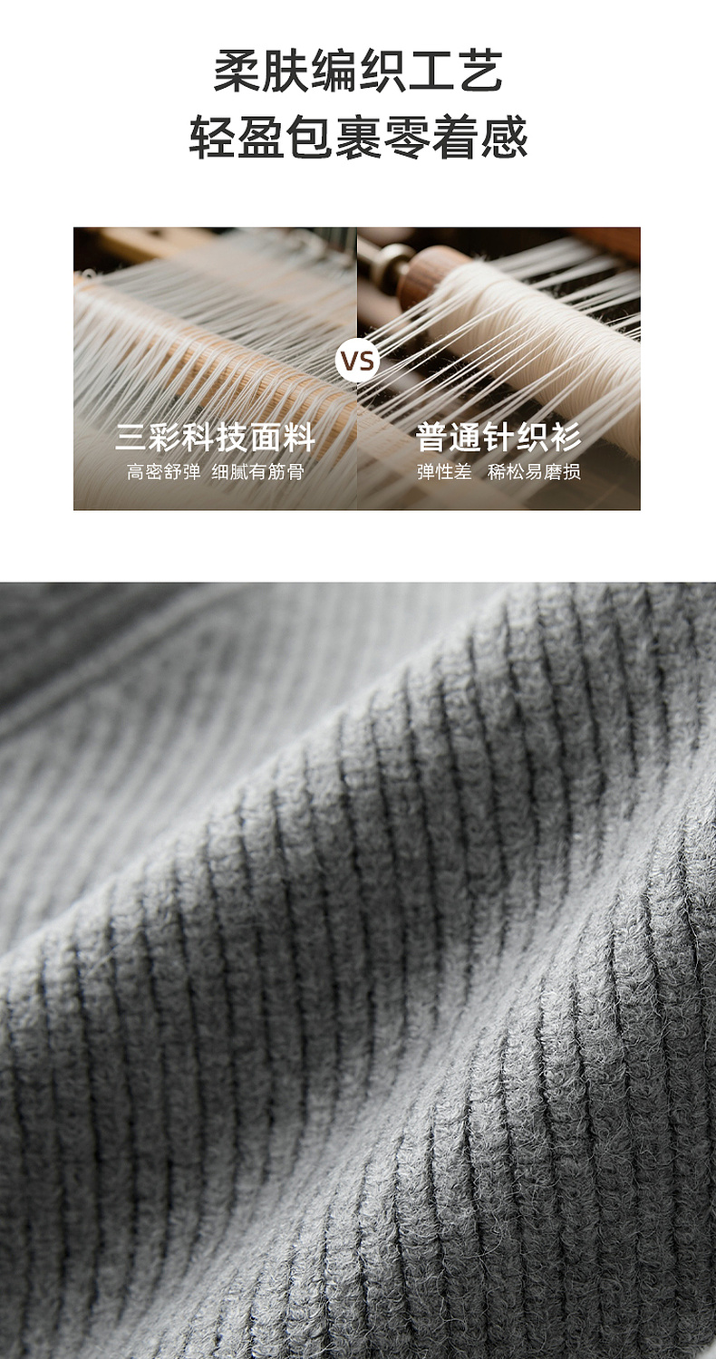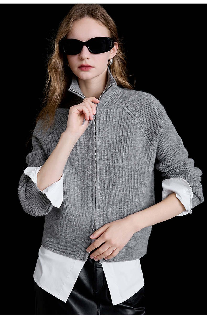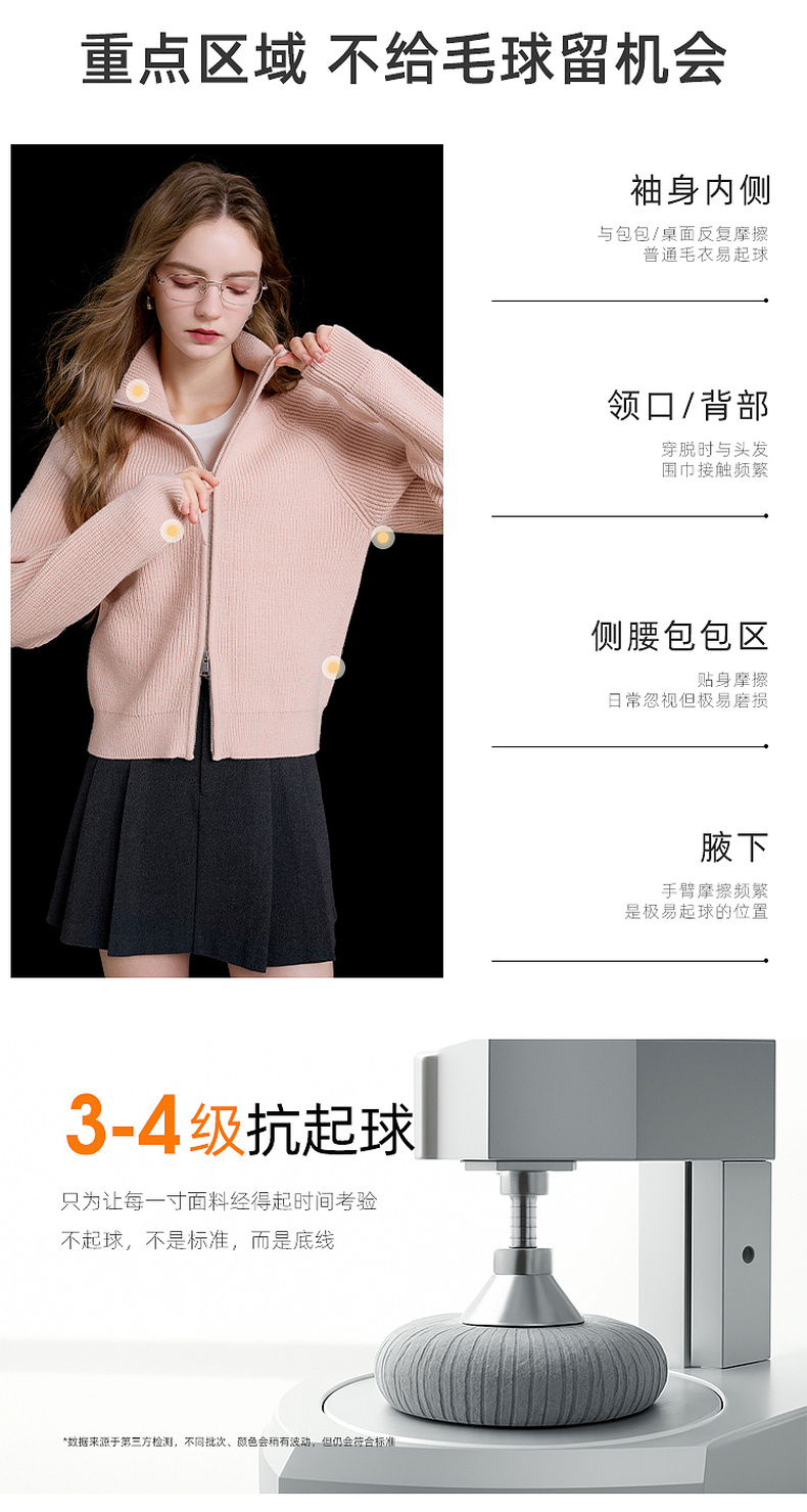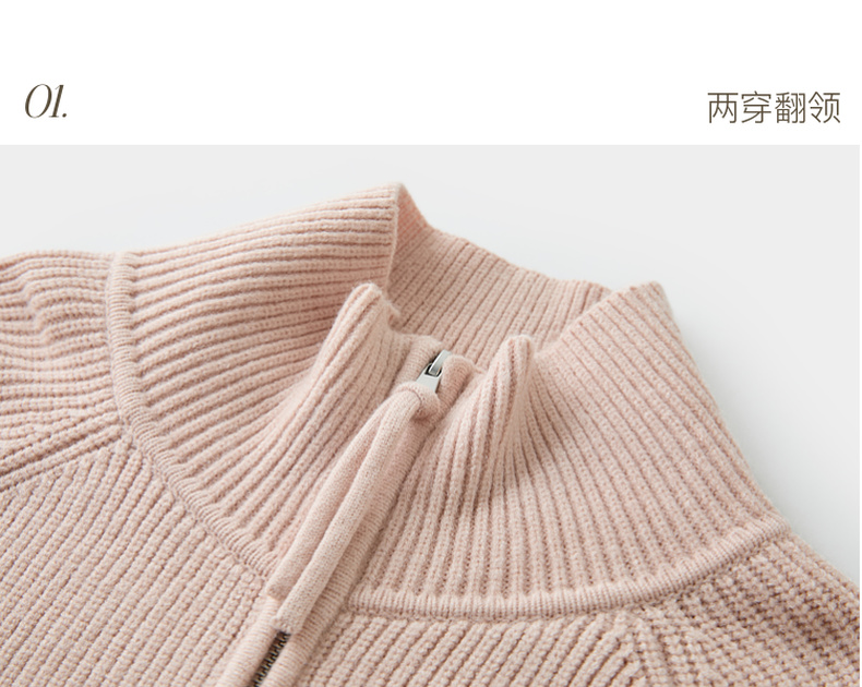 【抗起球】三彩2025冬季新款翻领插肩袖开衫宽松针织衫休闲简约M