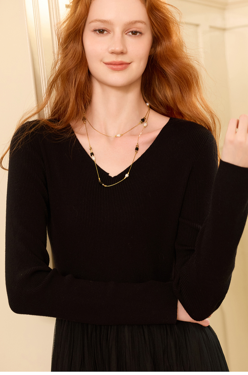 【满天星】三彩2025新款合成珍珠套链轻奢优雅项链复古叠戴毛衣链