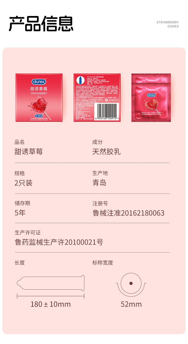 【避孕套】杜蕾斯甜诱草莓2只装