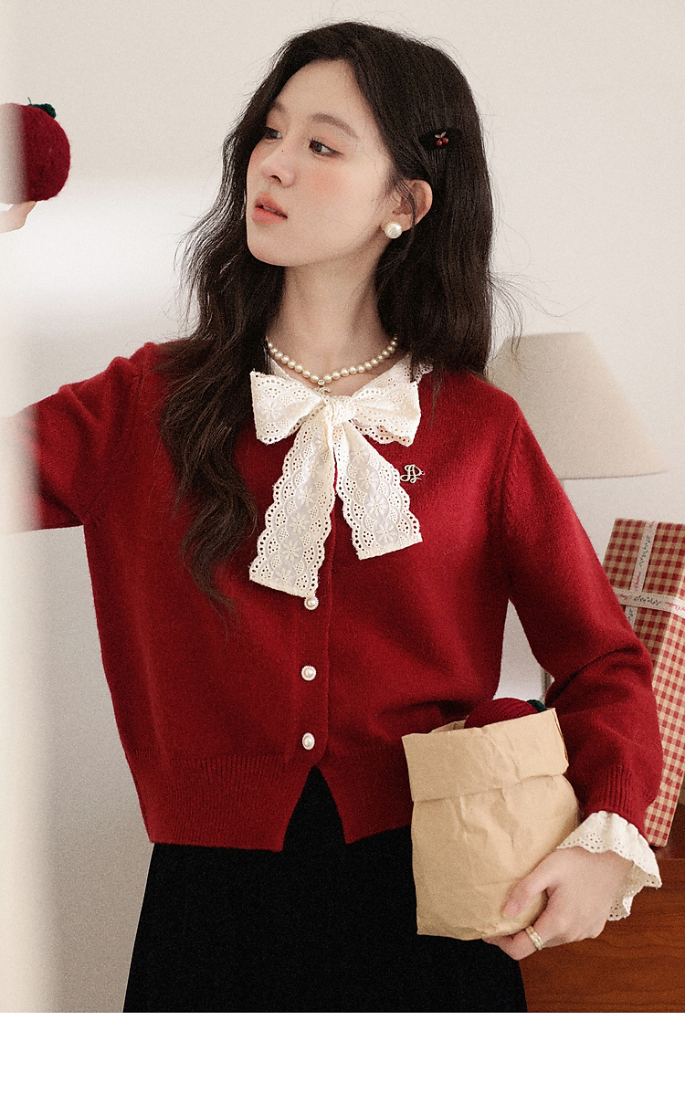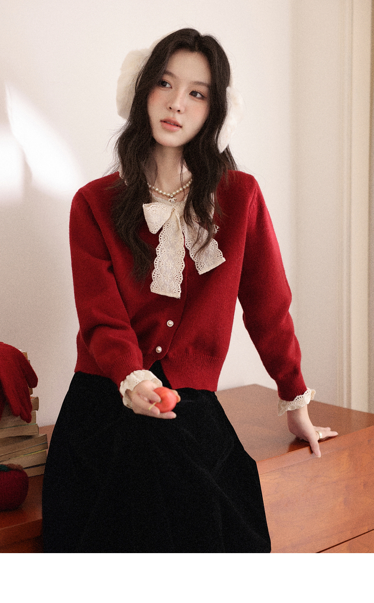 鹿向南【1217/20:00新品前1小时7折限量100件】红色针织衫