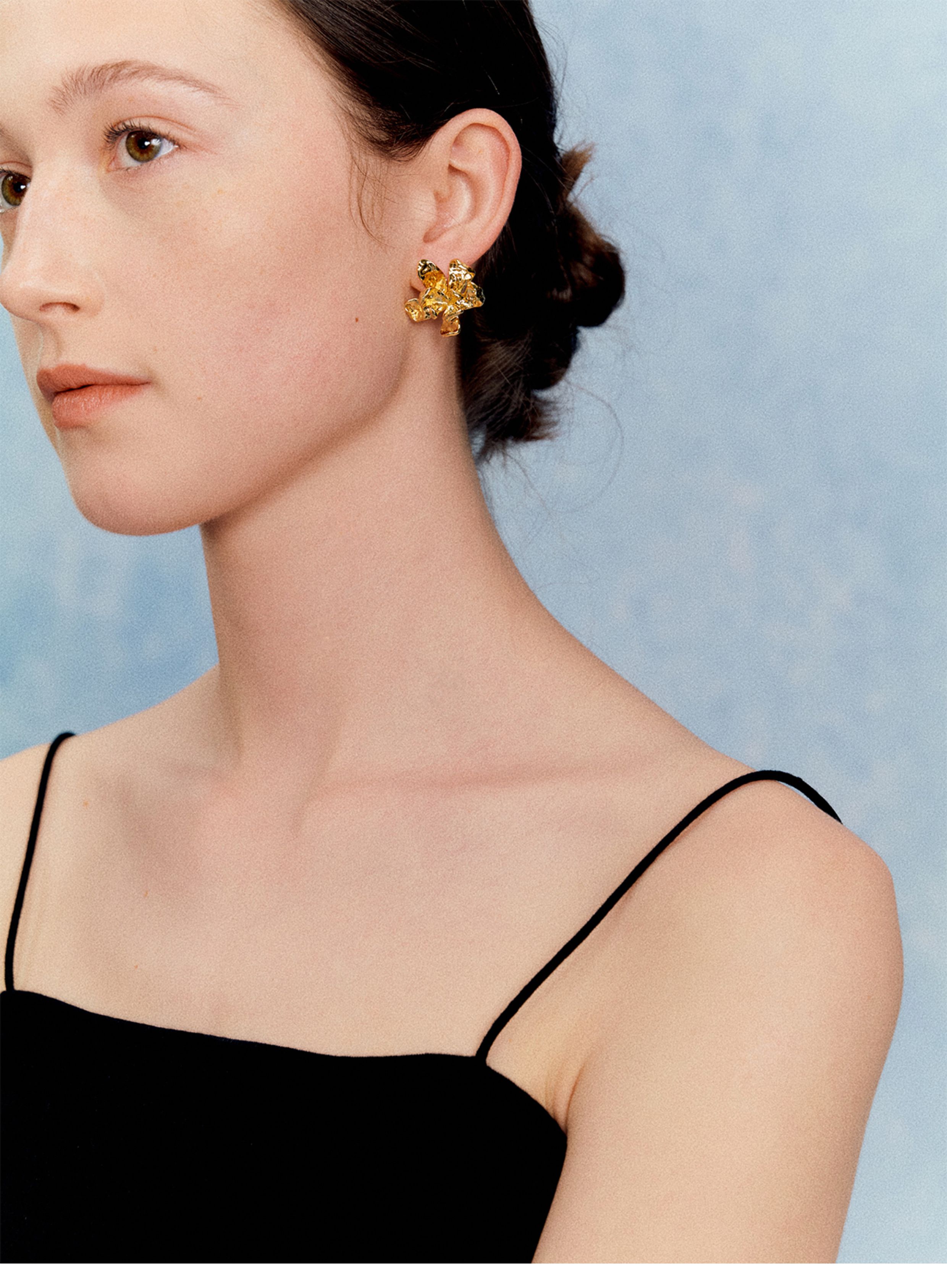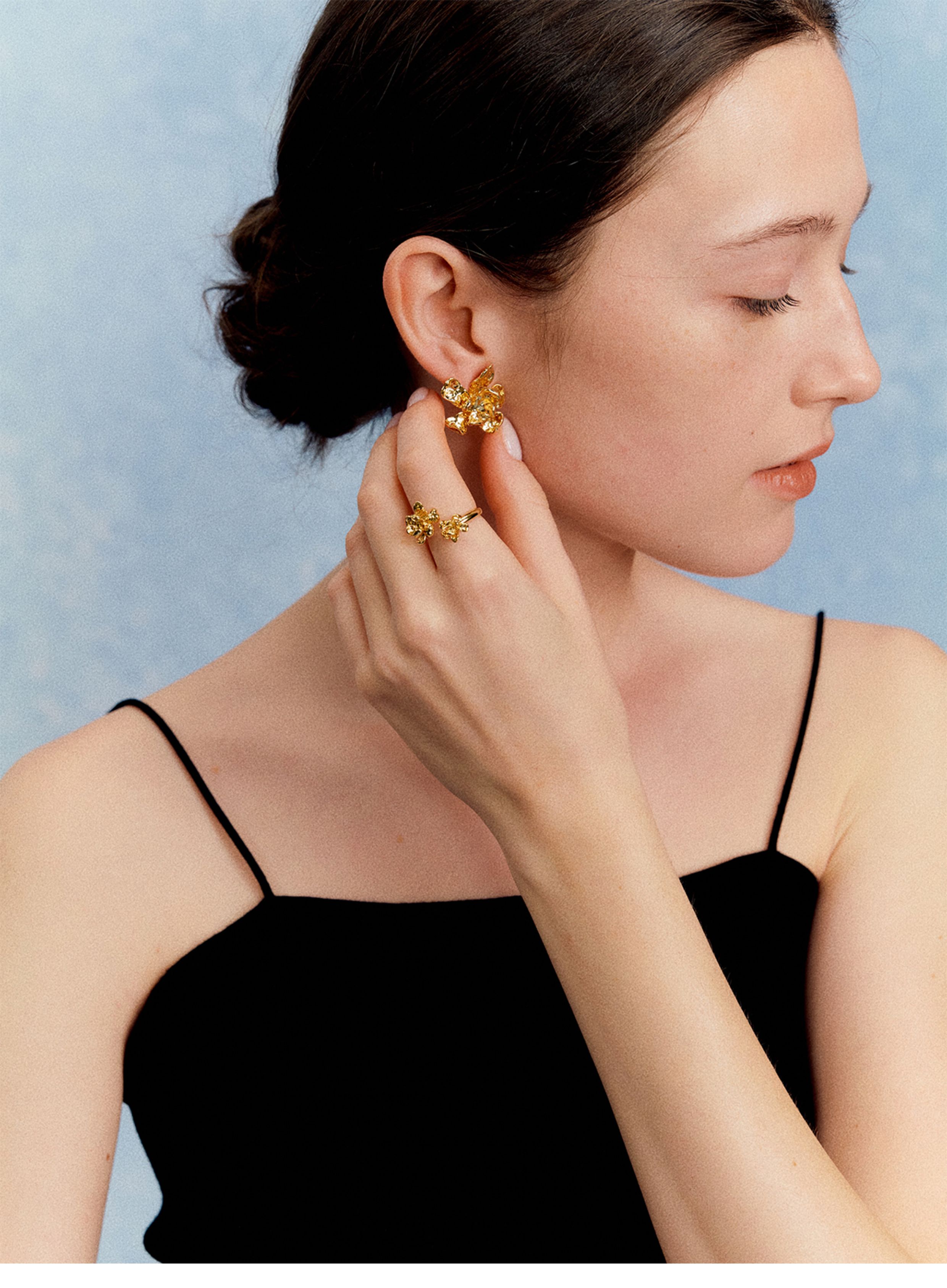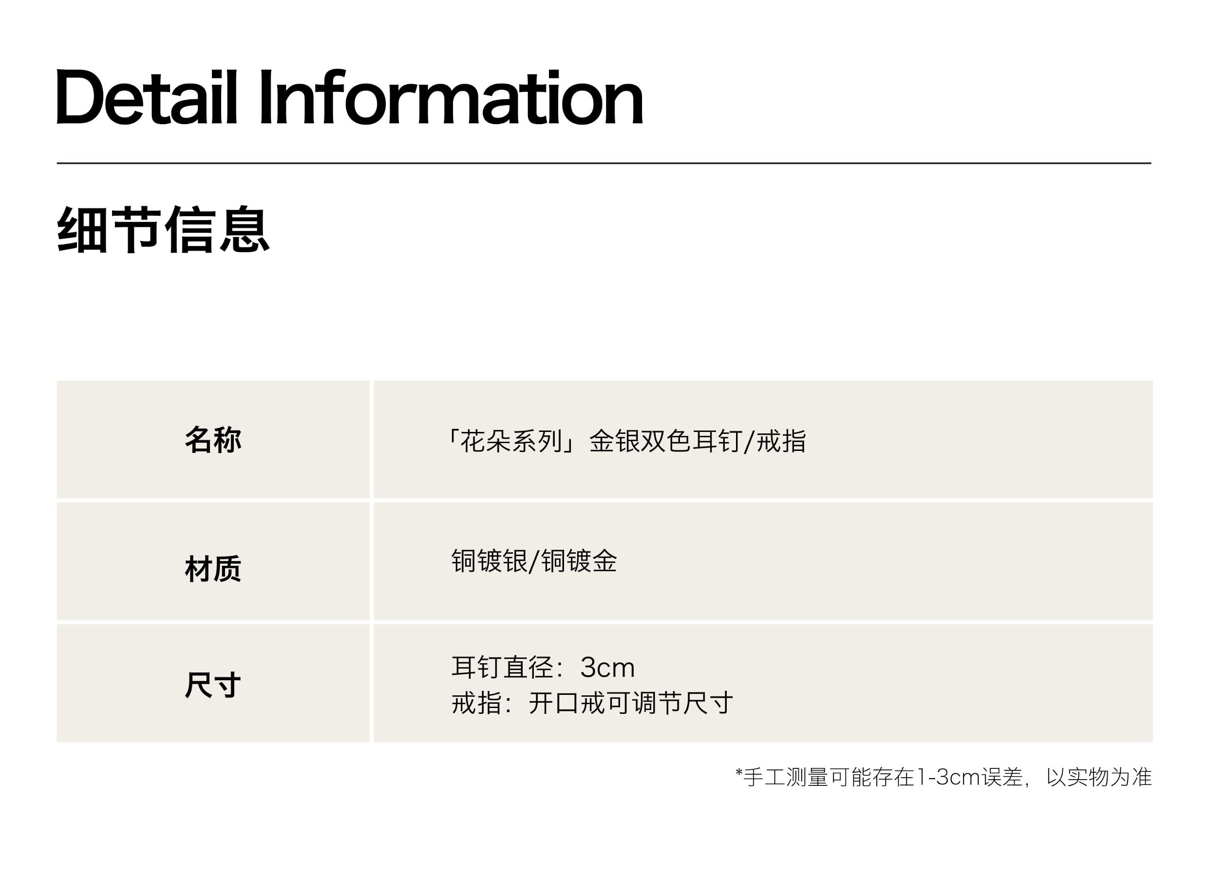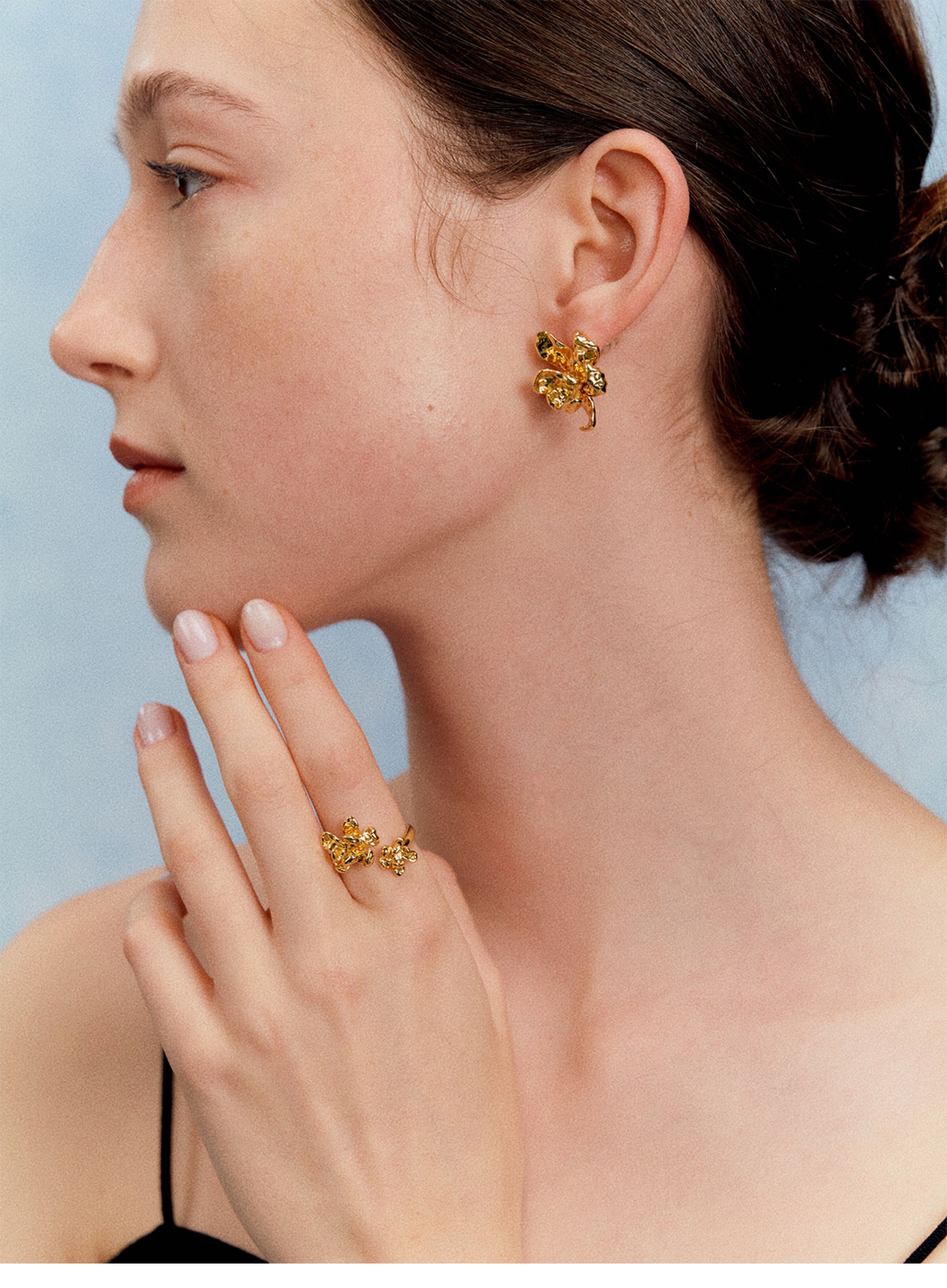 moreforPOEM 25/SS 花朵系列金银双色耳钉/戒指立体大花