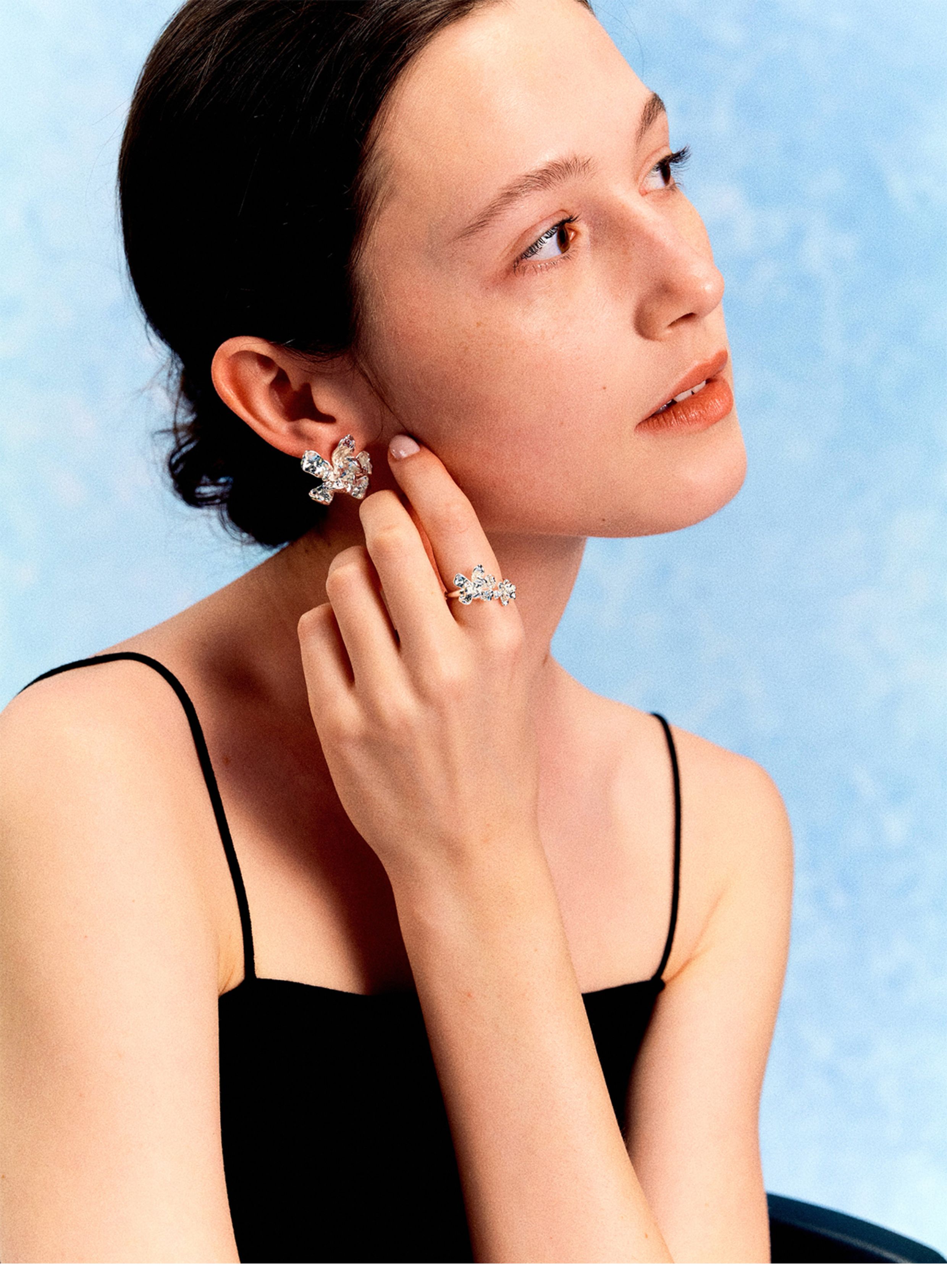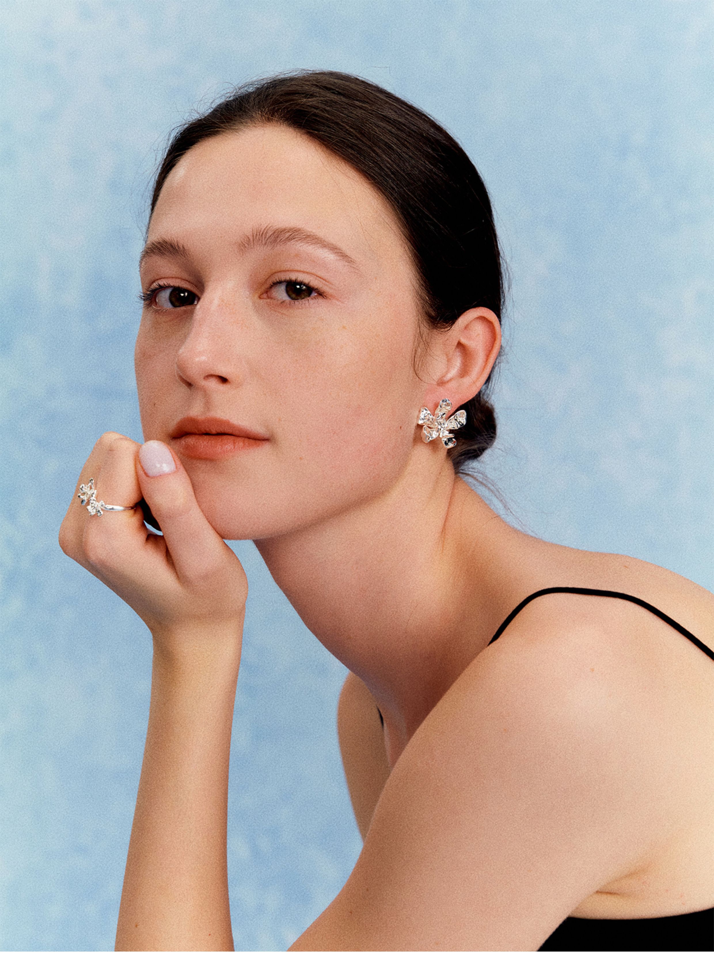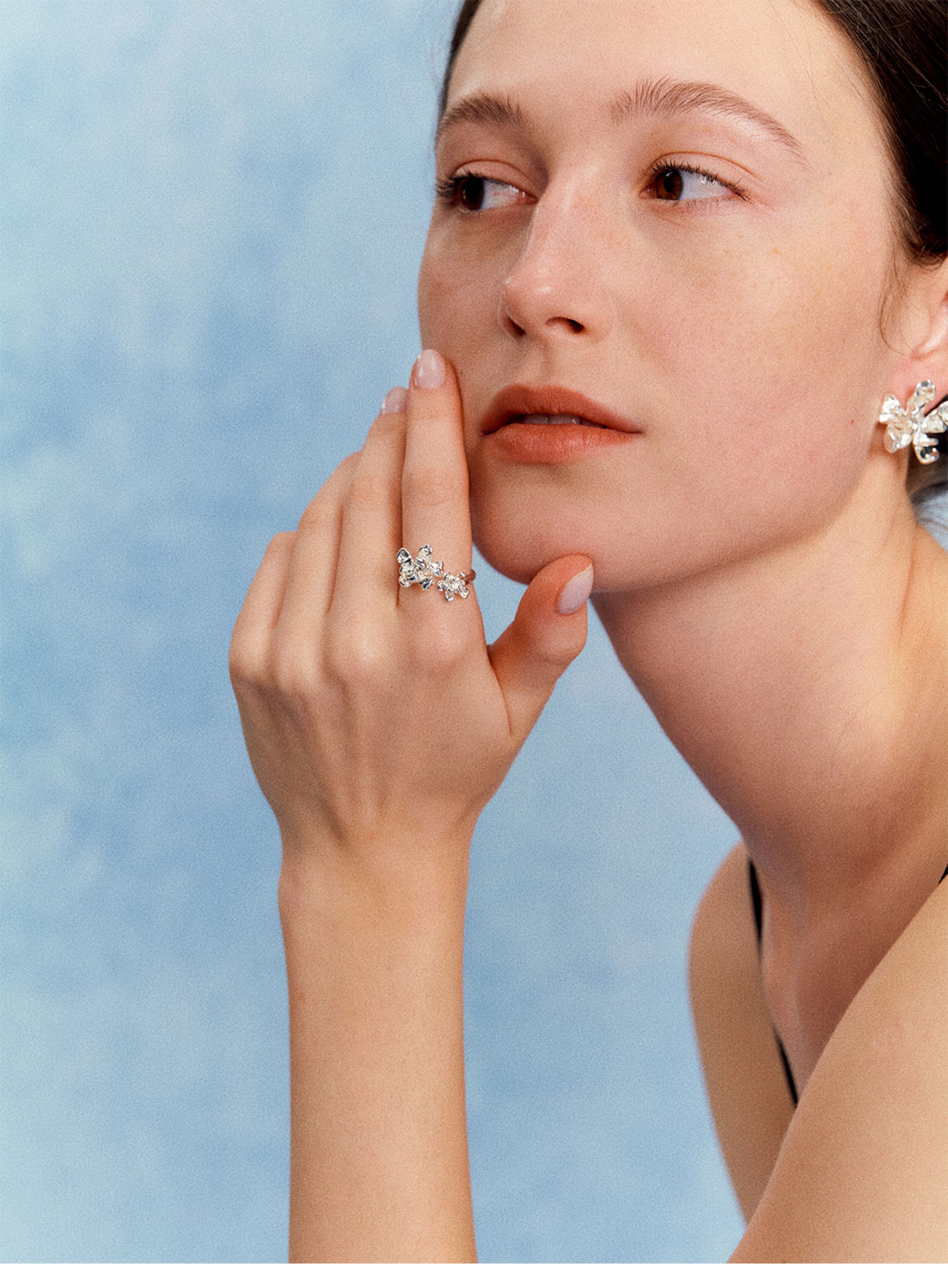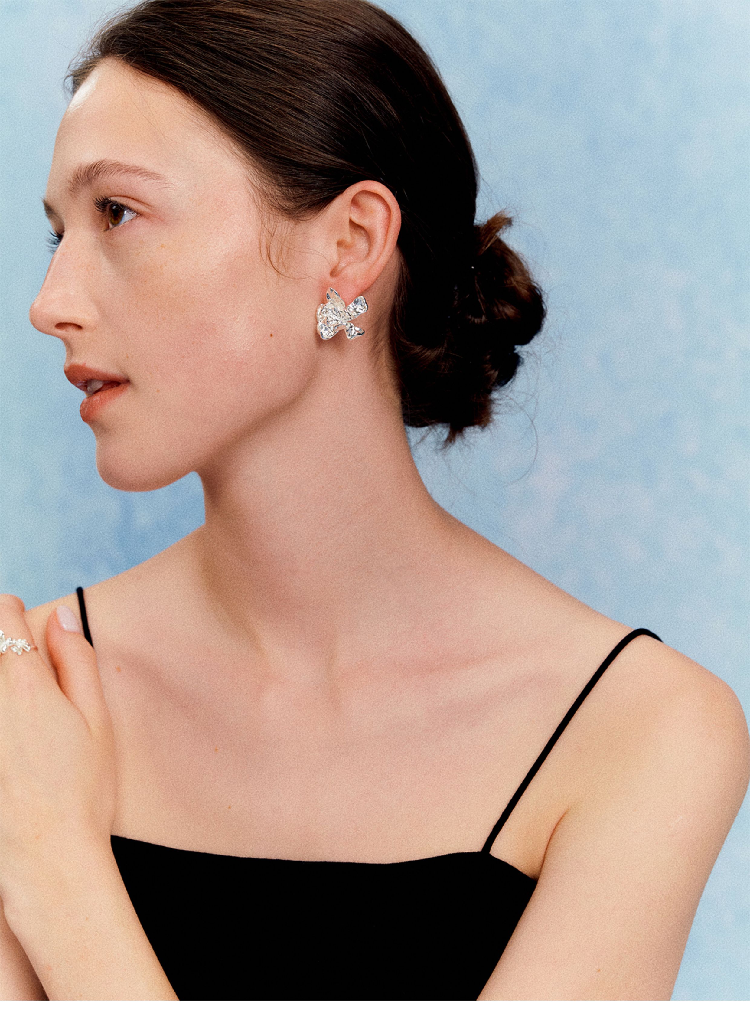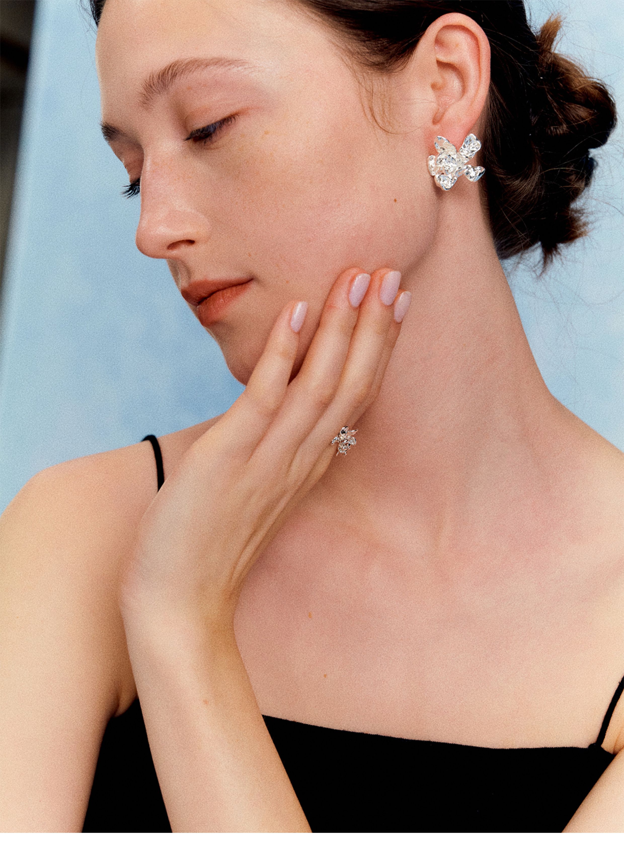 moreforPOEM 25/SS 花朵系列金银双色耳钉/戒指立体大花