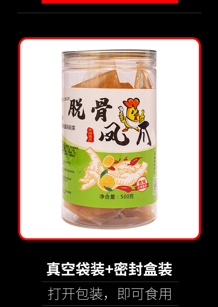 【晓姚】柠檬酸辣脱骨凤爪 500g 开盖即食 罐桶装 网红解馋小零食