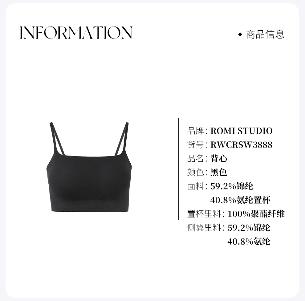 ROMI STUDIO“简约舒适”莫代尔弹力紧身自带bra吊带背心RWCRSW3888【发货时间25天】