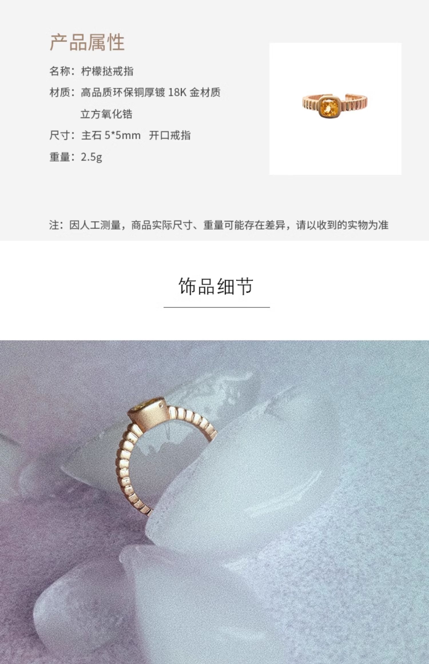 LHWINDSOR 原创设计感戒指柠檬挞戒指黄色极简戒指