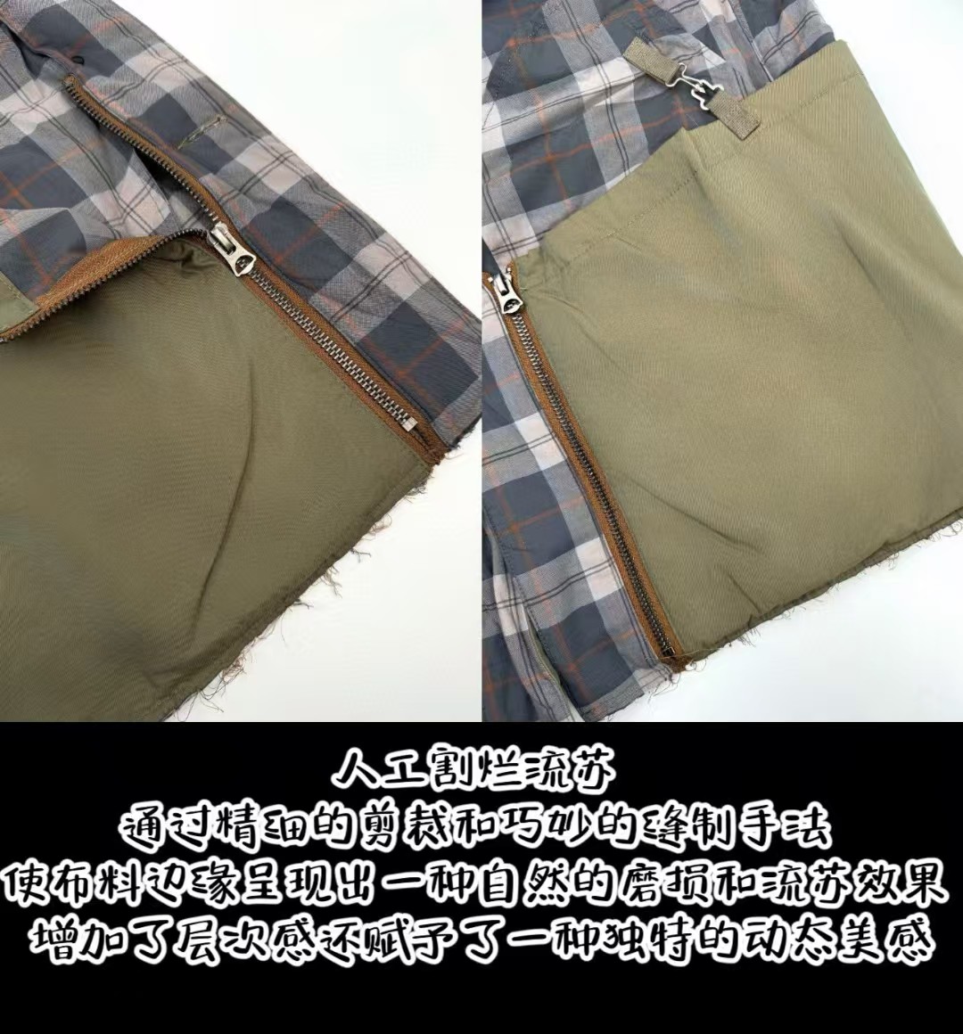 工艺2: 人工割烂流苏 通过精细的剪裁和巧妙的缝制手法 使布料边缘呈现出一种自然的磨损和流苏效果 不仅增加了层次感还赋予了一种独特的动态美感