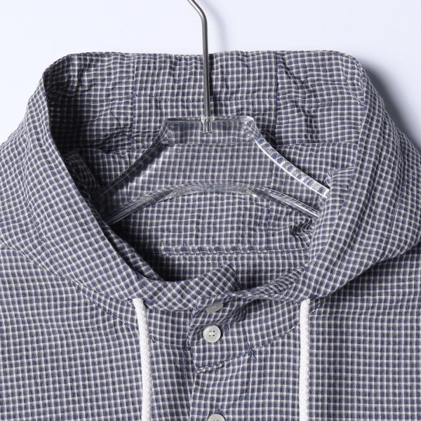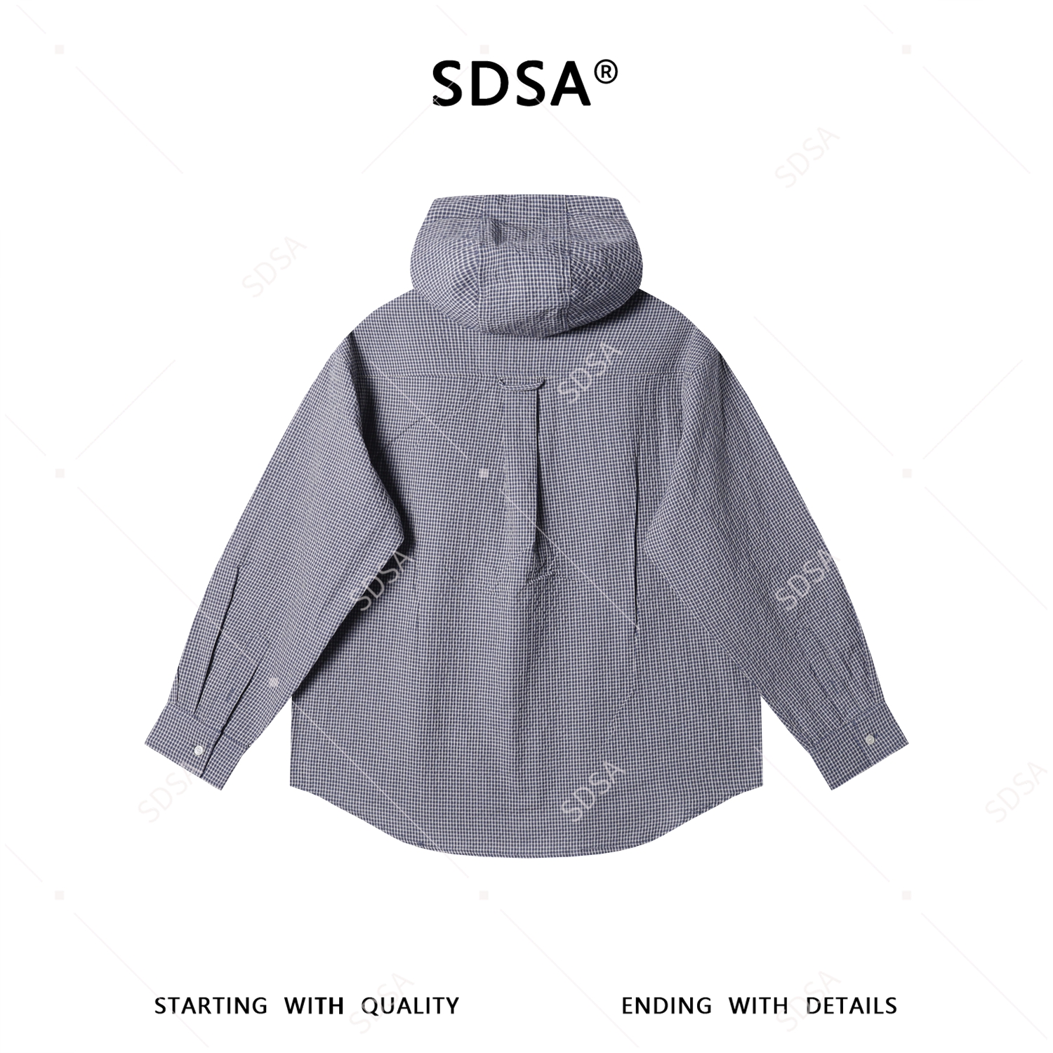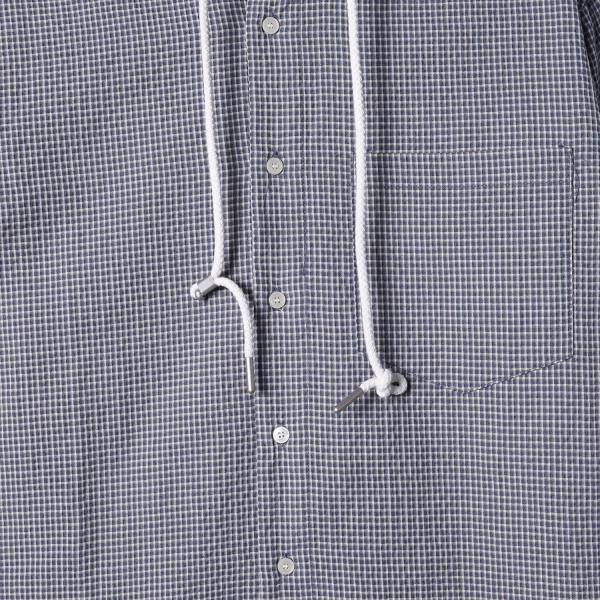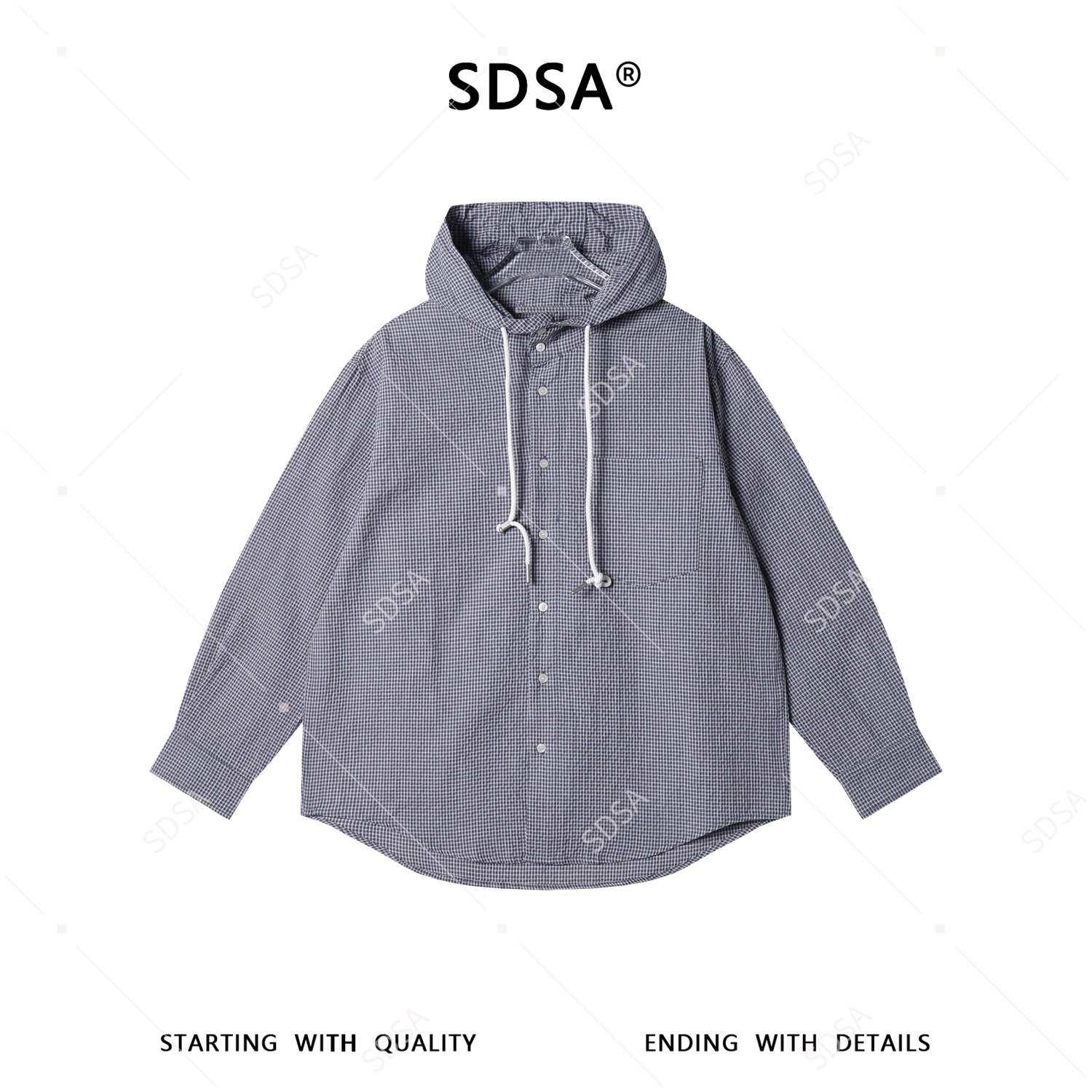 61066SDSA男士春夏新款痞帅男装美式格子纽扣抽绳连帽衬衫百搭宽松衬衣