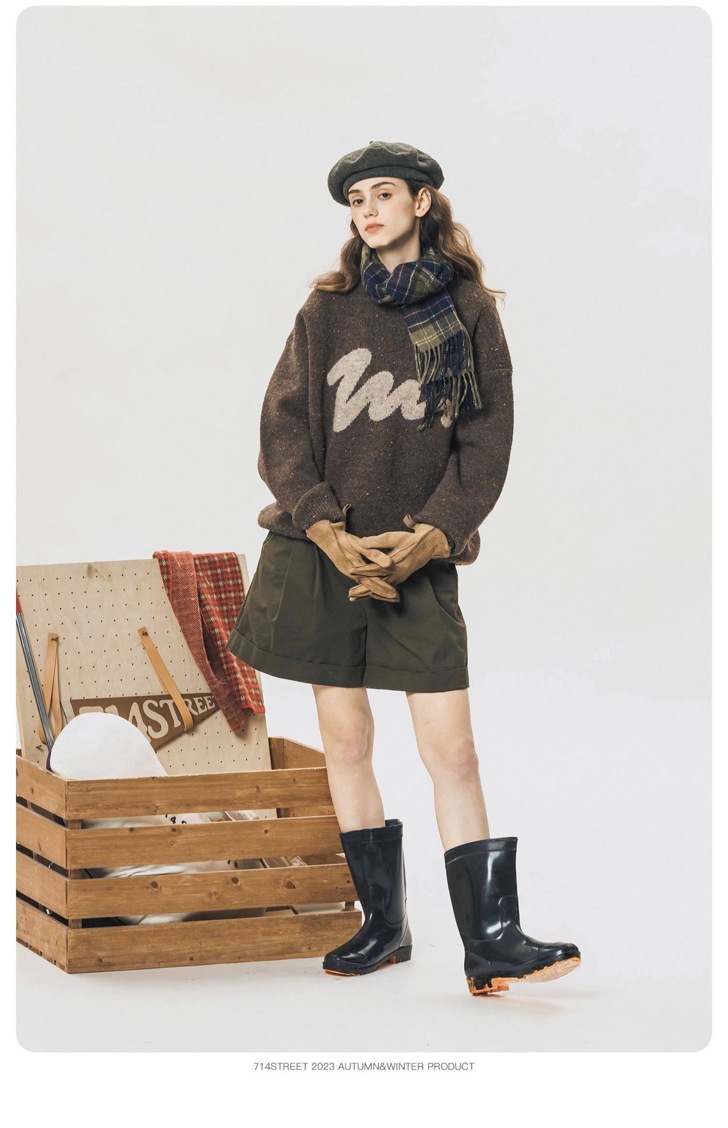 714street情侣毛衣秋冬日系复古上衣套头羊毛衫宽松慵懒风针织衫
