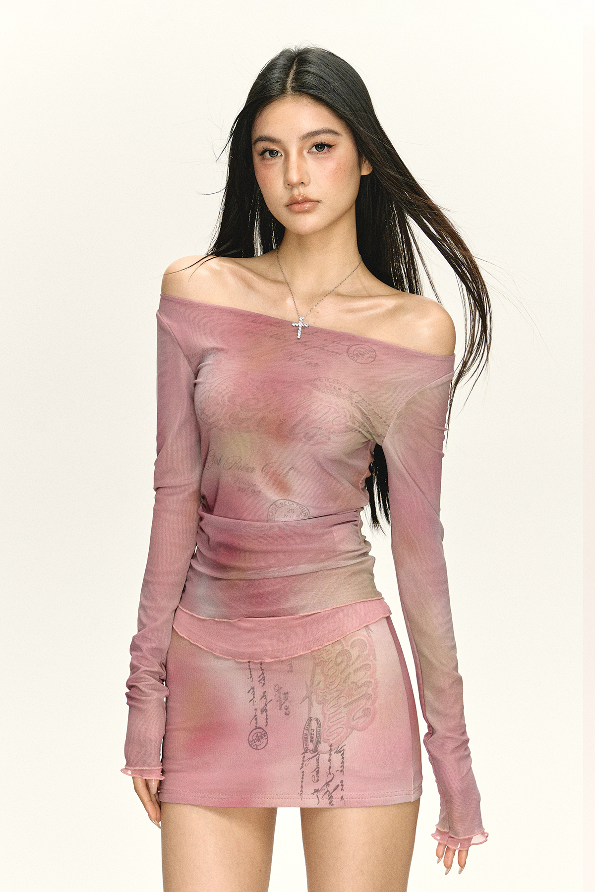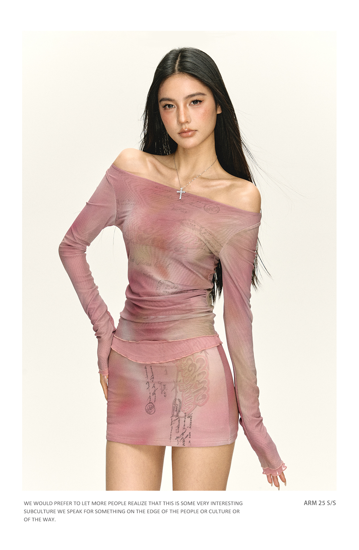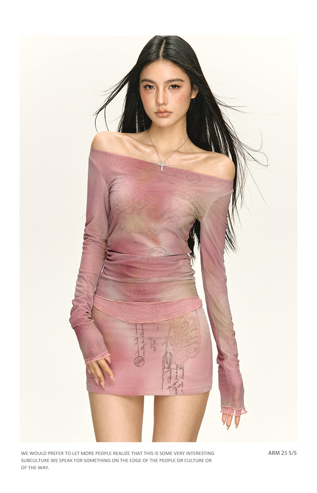 Ariseism 美式复古灰色修身短袖t恤短裙女夏套装两件套