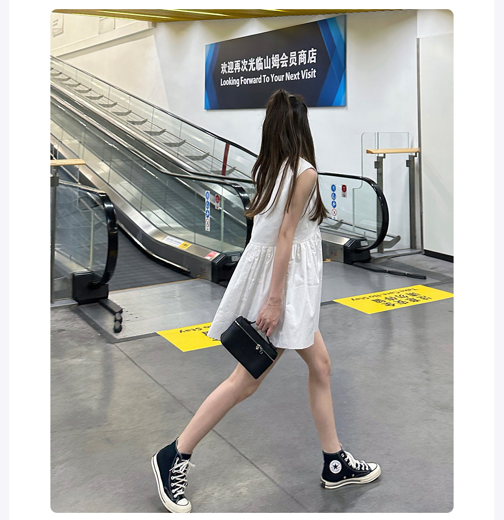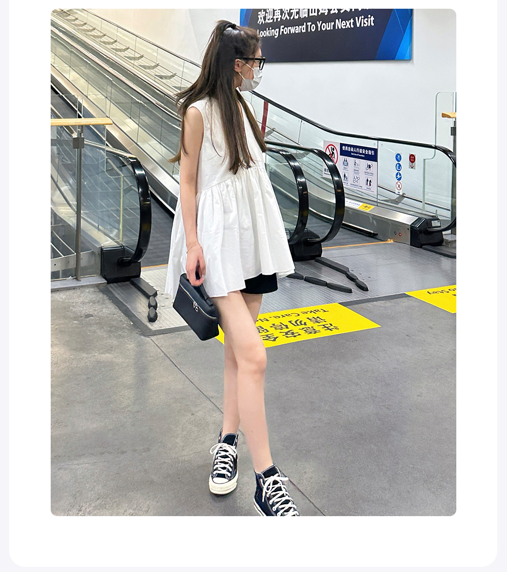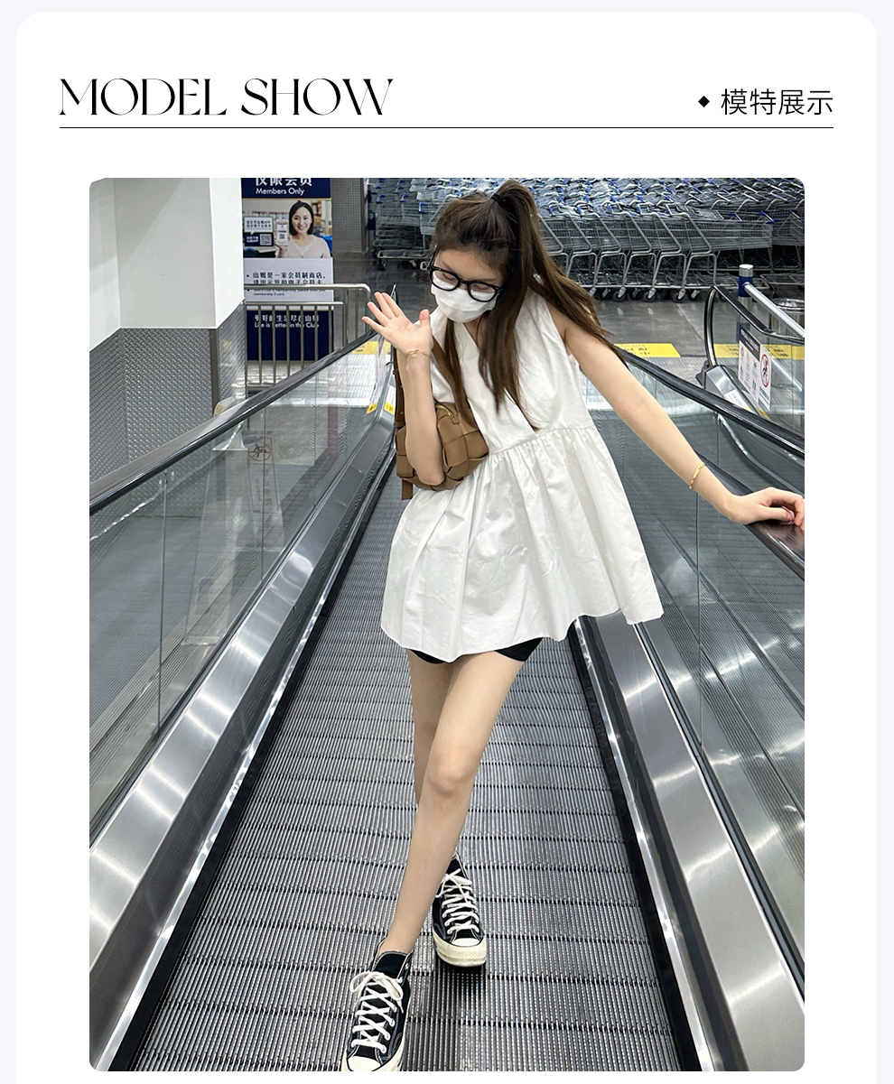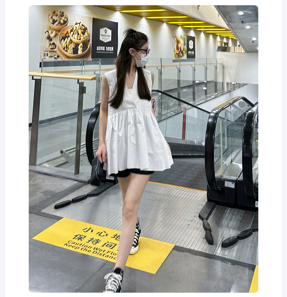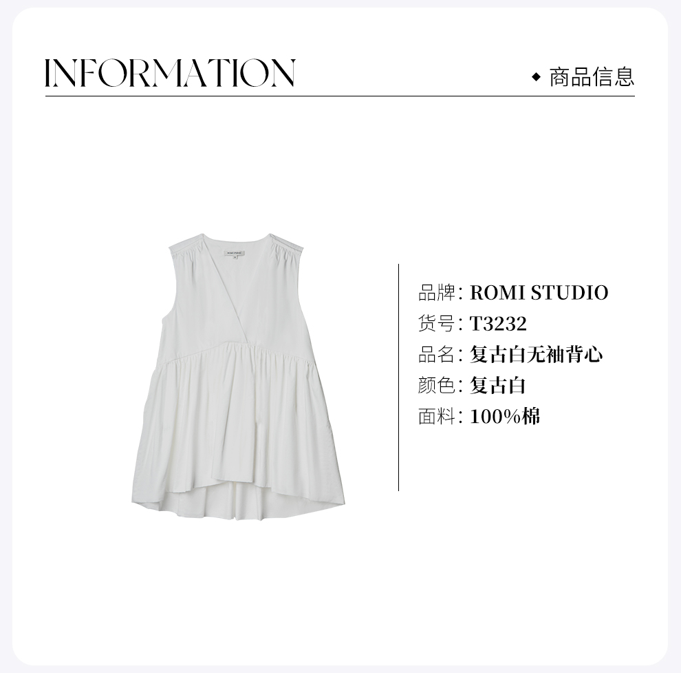 ROMI STUDIO百搭休闲 简约V领收腰荷叶边复古白无袖背心T3232白色