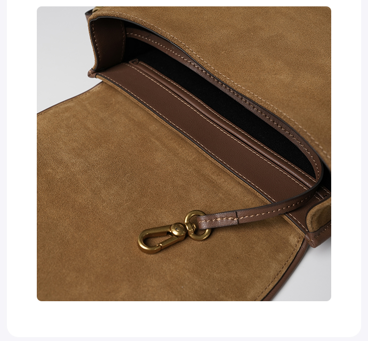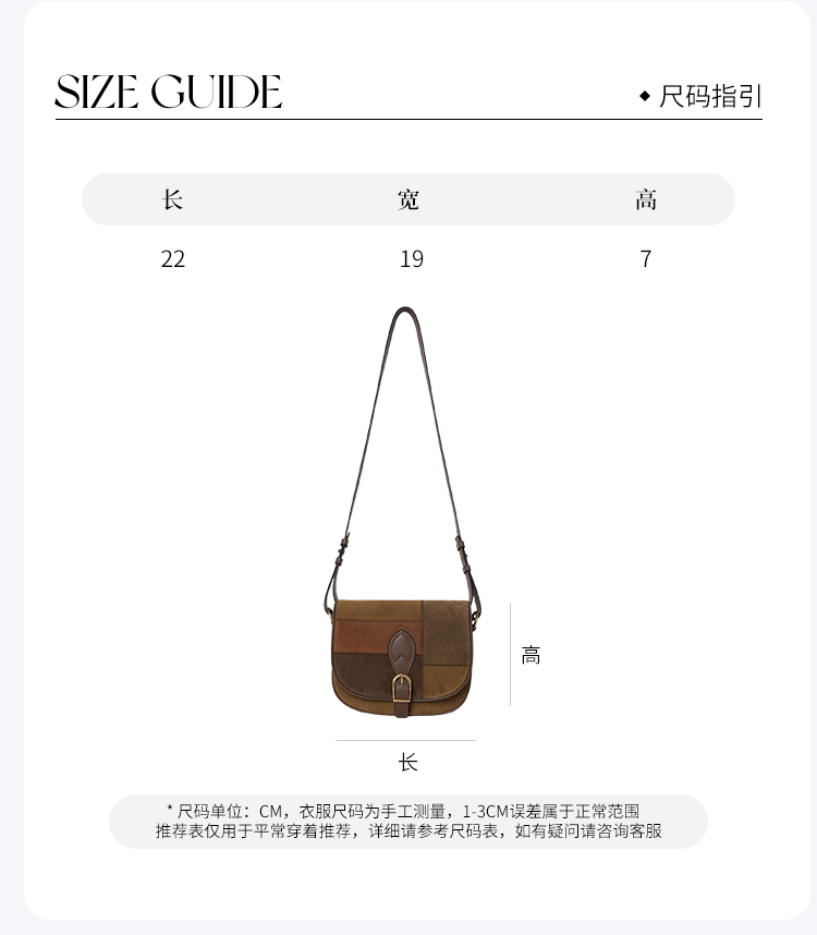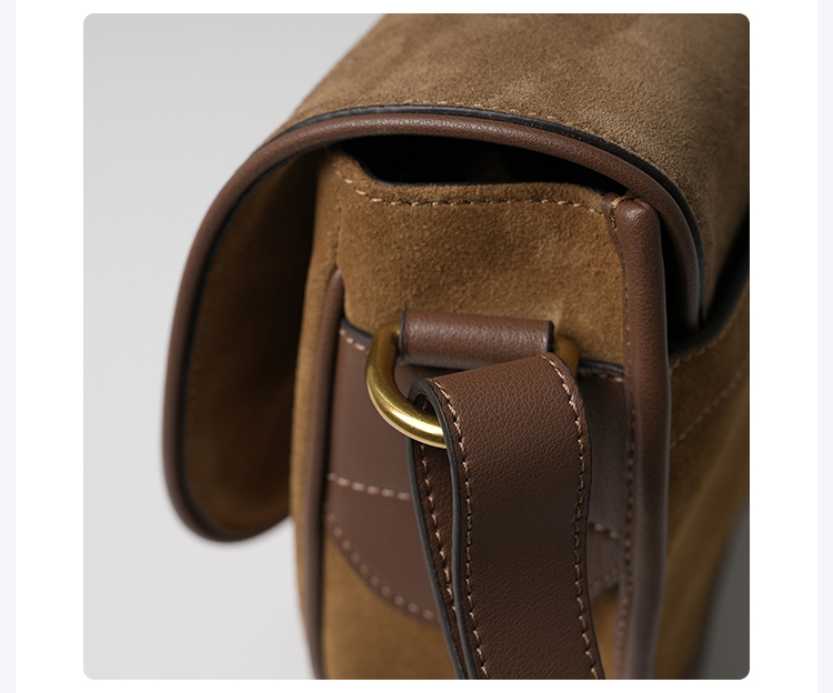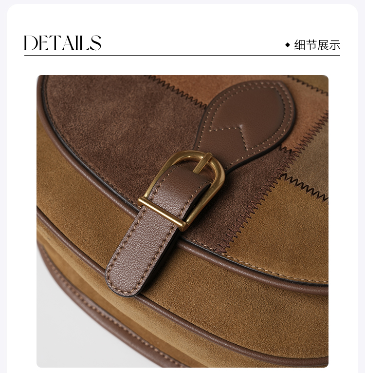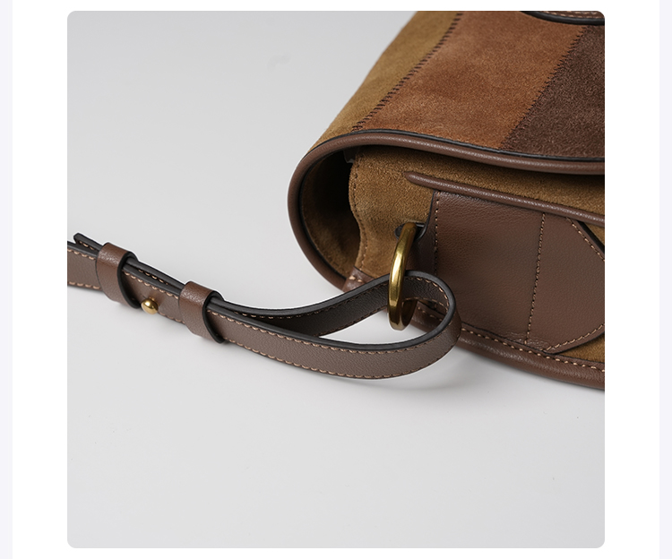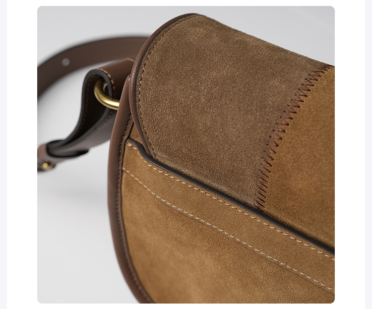 ROMI STUDIO“棕标甄选”*牛皮拼色绒面单肩斜跨马鞍包 24SSB144