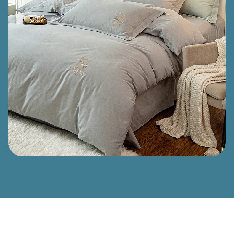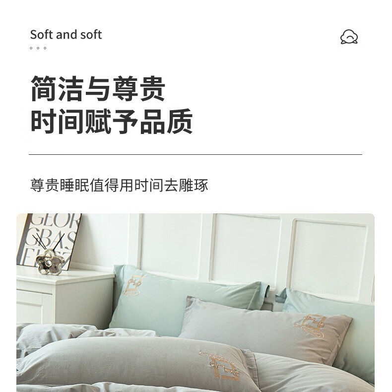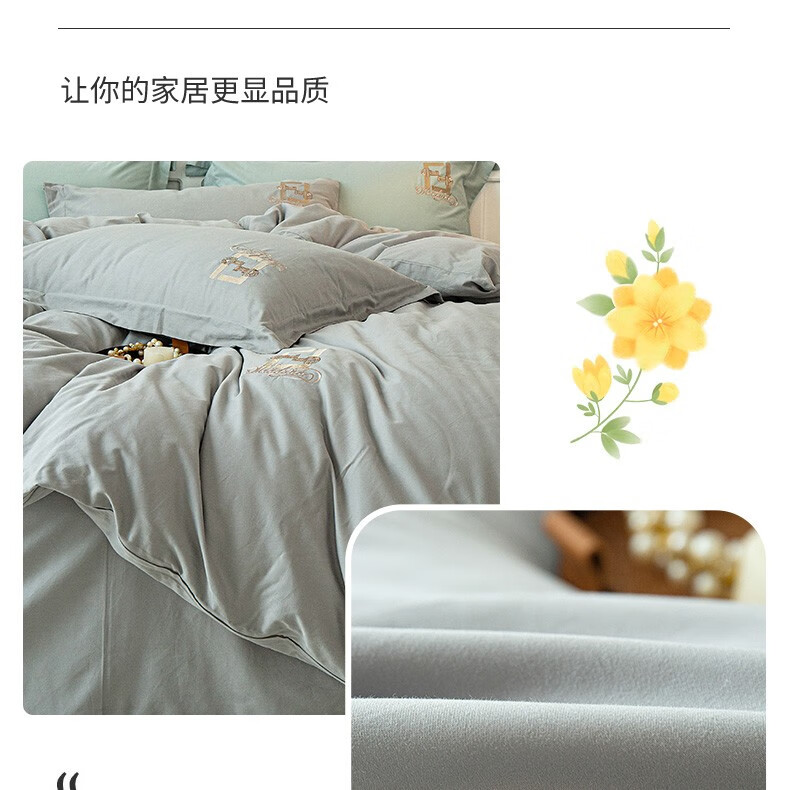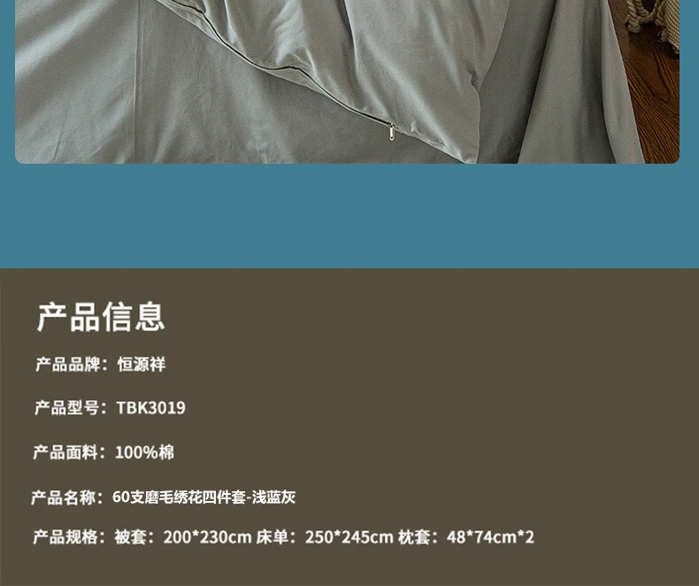 恒源祥礼业TBK3019绣花长绒棉四件套(浅蓝灰) 1.5m(被套:200*230cm)